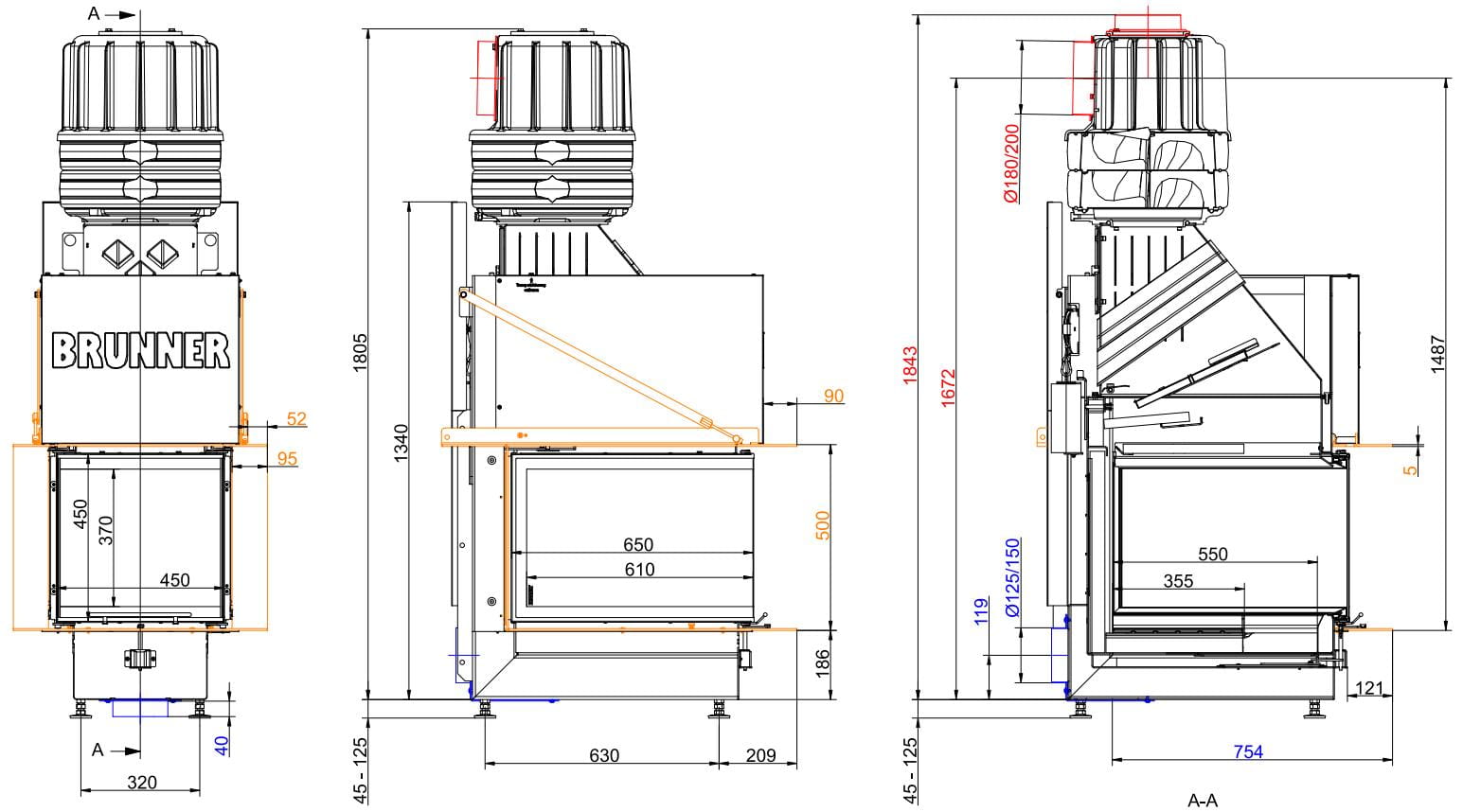 Также все модели Brunner имеют возможность подвода воздуха на горение извне (из соседнего помещения или улицы).