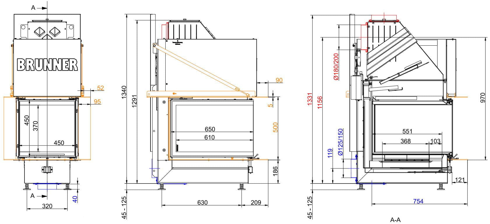 Каминная топка Brunner BKH 5.0 Panorama 45-65-45-65 ST (Бруннер БКХ 5.0 Панорама 45-65-45-65 ST)