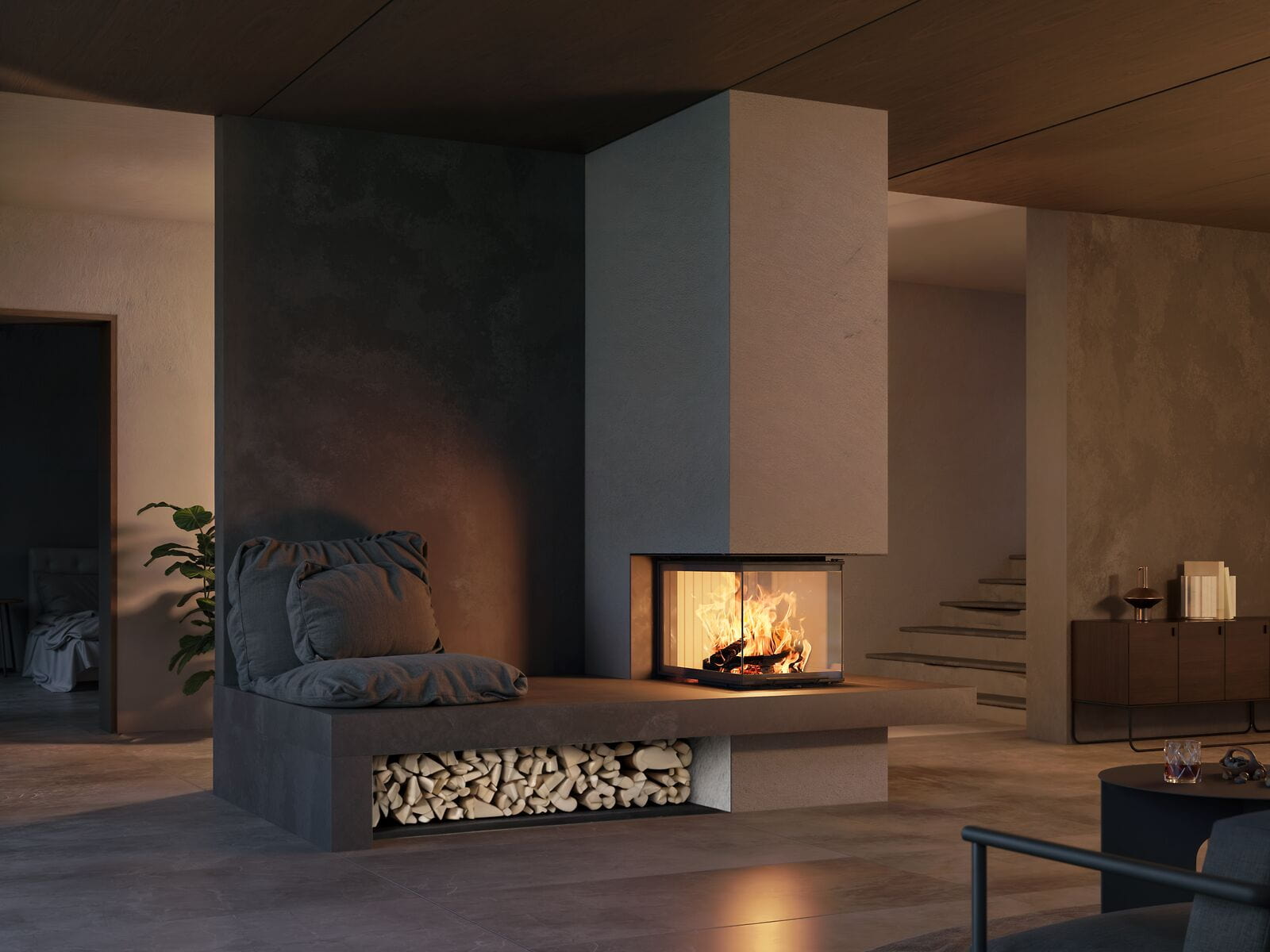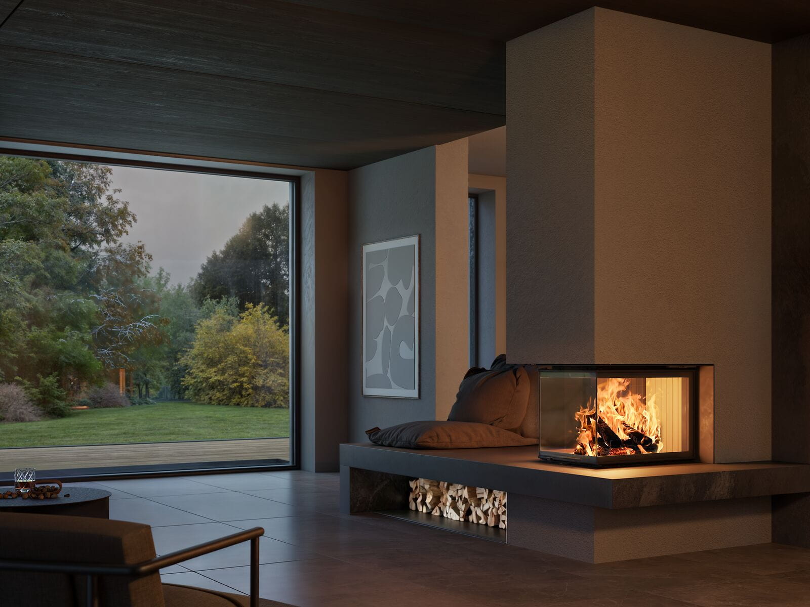 Корпус очагов Panorama выполнен из стали, что обеспечивает быстрый нагрев помещения. Модельный ряд состоит из топок с трехсторонним стеклом. Такие модели можно размещать у стены или использовать в качестве лаконичного завершения межкомнатной перегородки. Дверца всегда оснащаться подъёмным механизмом. Номинальная мощность топок — от 7 до 11 кВт. Гарантия — 5 лет. Подробнее об особенностях топок Brunner BKH 5.0 Panorama: