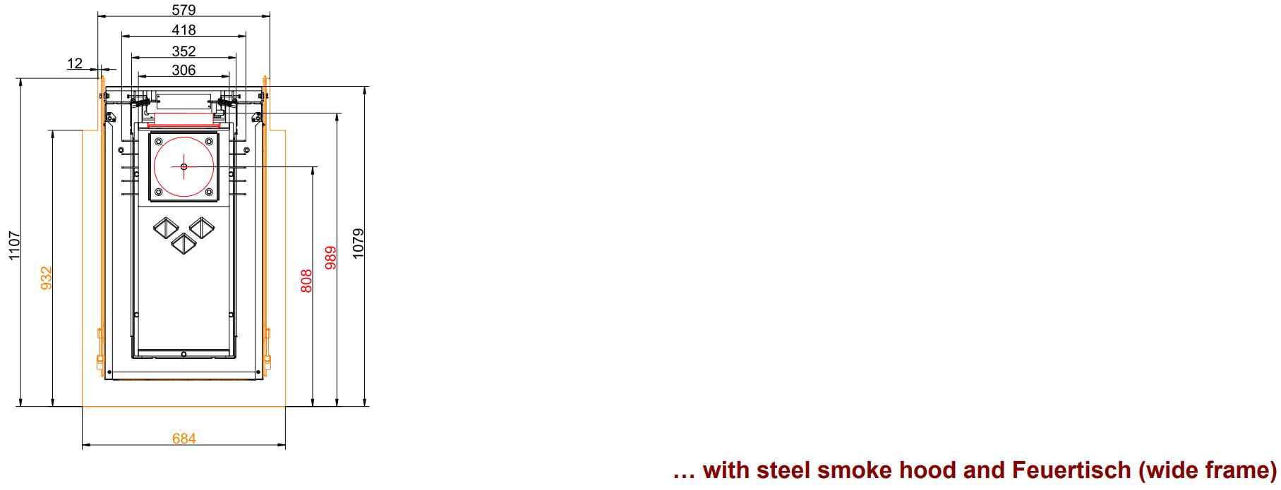 Самая короткая версия чугунного расширения. Размеры выбраны таким образом, чтобы оно заменяло боковые элементы (узкий/широкий панорамный конец) и располагалось вровень с огнеупорным столом.