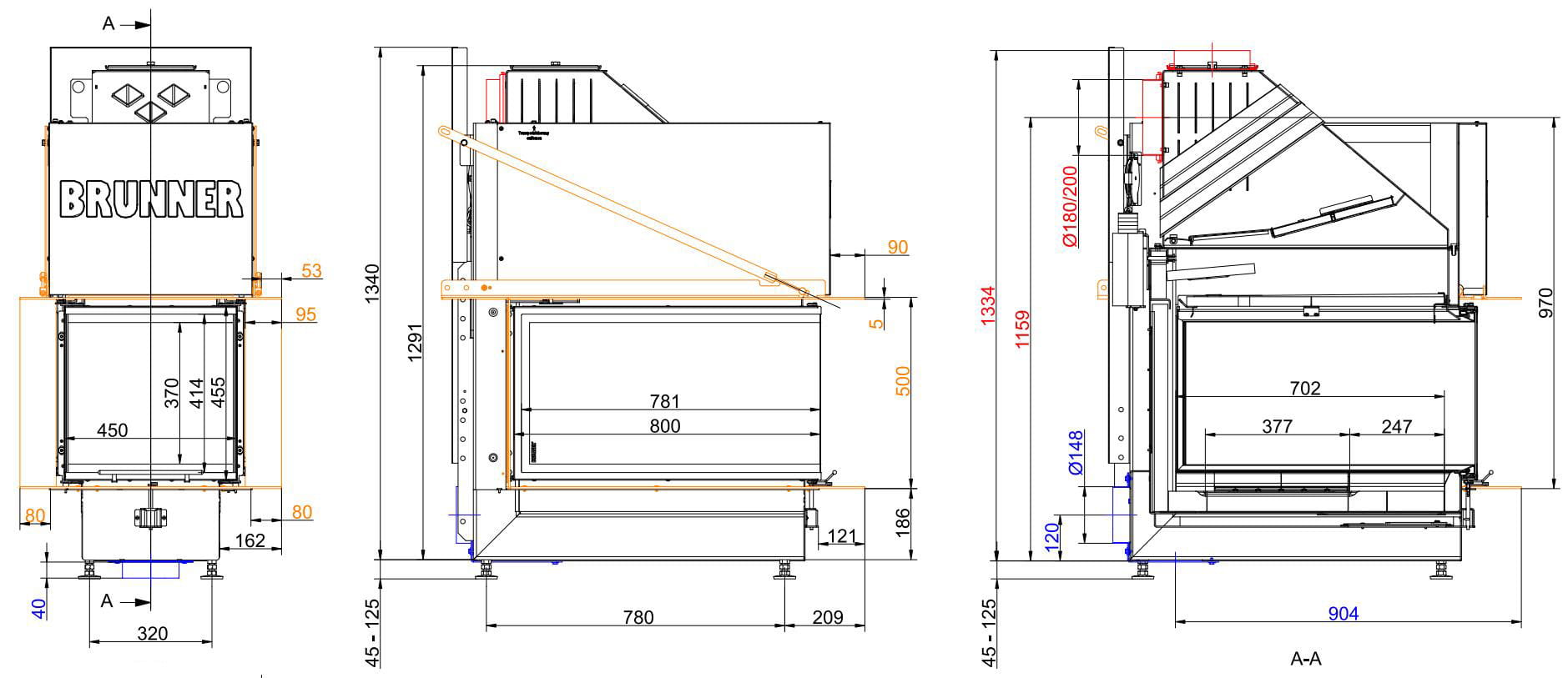 Каминная топка Brunner BKH 5.0 Panorama 45-80-45-80 ST (Бруннер БКХ 5.0 Панорама 45-80-45-80 ST)
