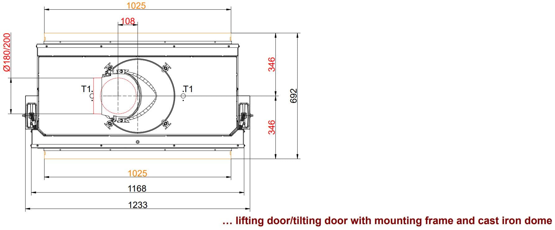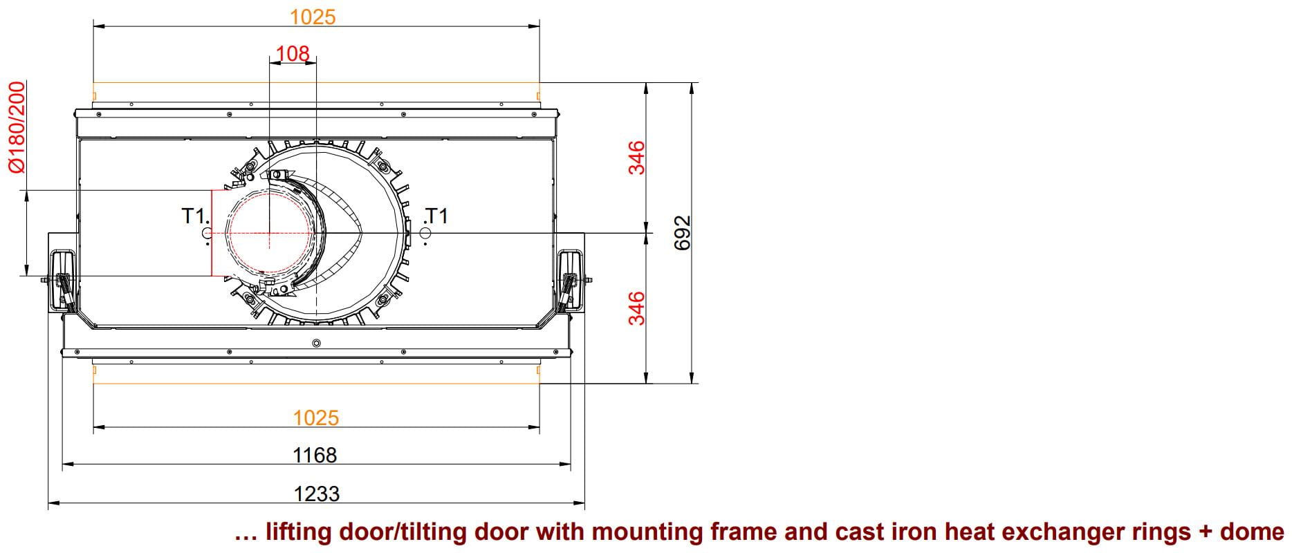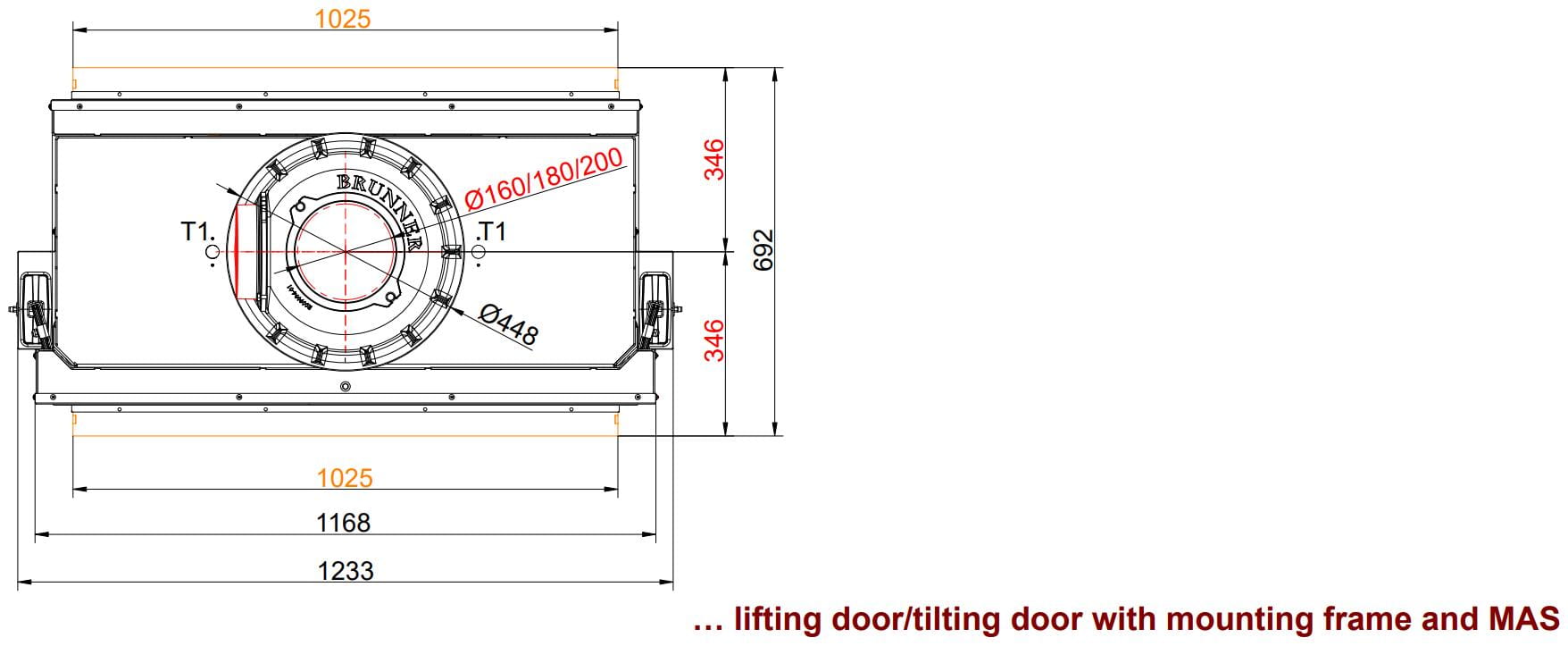 В серии топок Brunner BKH 5.0 Tunnel покупатель может выбрать обрамление двери по своему усмотрению. В случае двери с подъёмным механизмом — чёрная монтажная рама глубиной 60 мм, что делает примыкание топки к облицовке практически незаметным, или дверная чёрная рама, значительно выступающая по периметру. Если приобретается топка с боковым открыванием — выбор между монтажным кронштейном и чёрной дверной рамой.