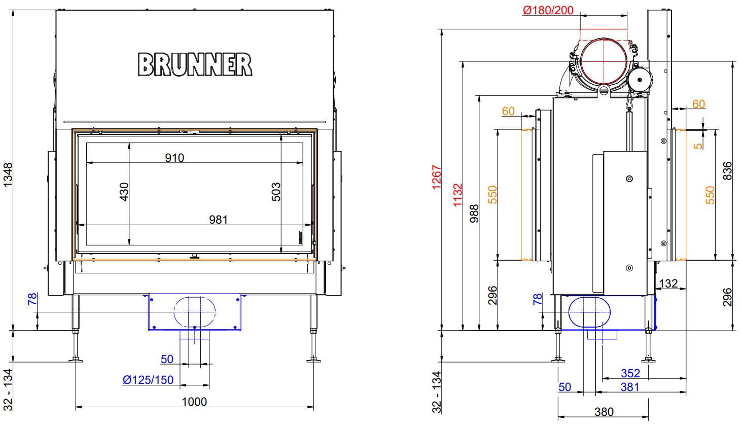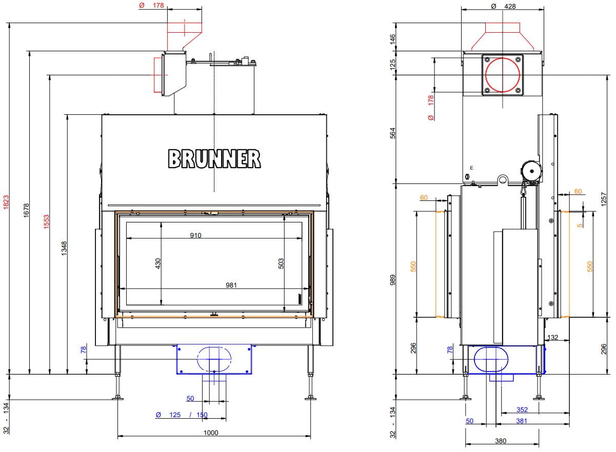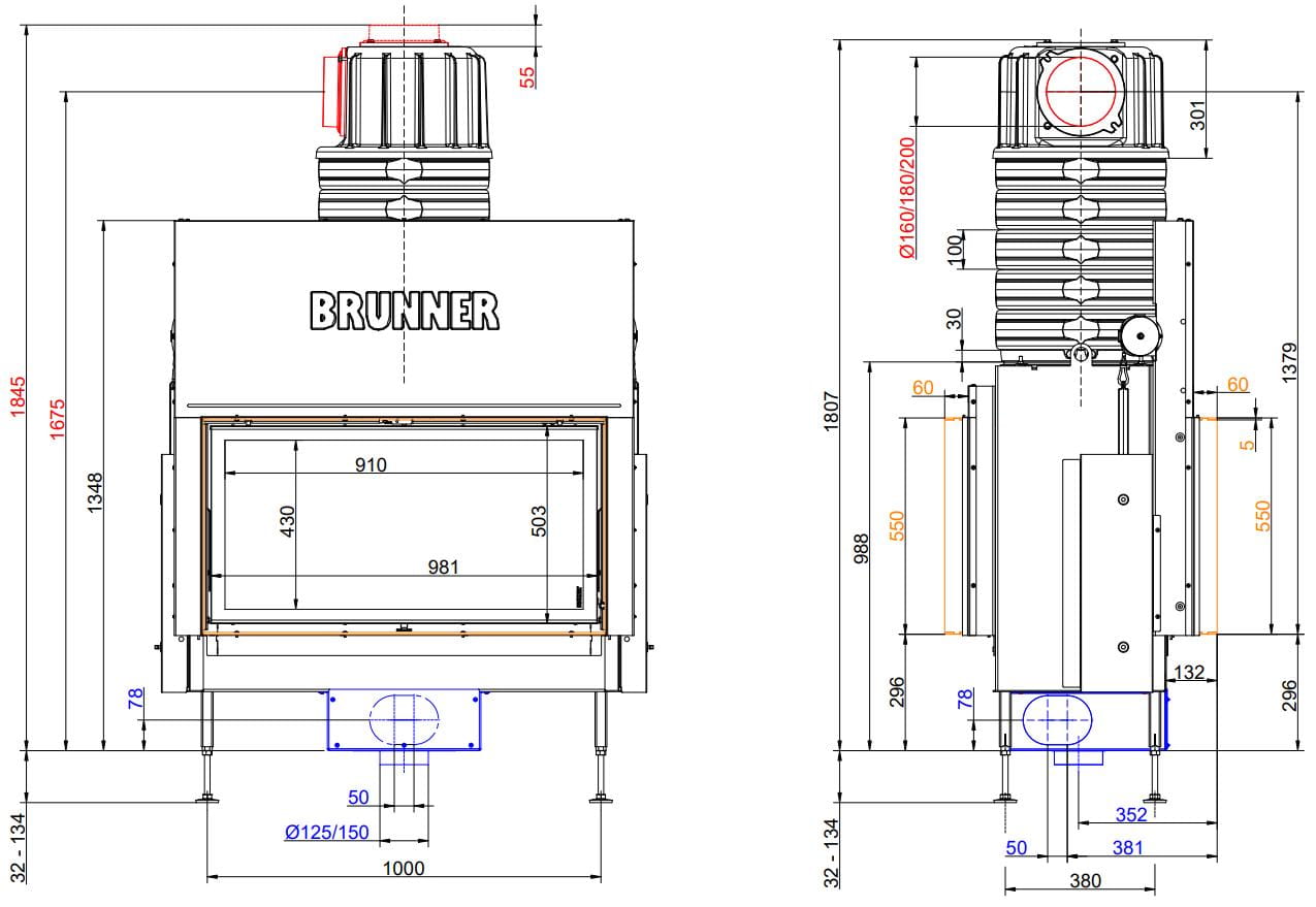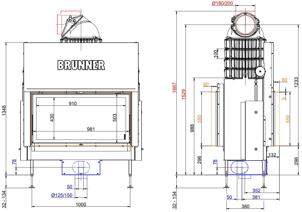 Каминная топка Brunner BKH 5.0 Tunnel 50-98 ST-KT (Бруннер БКХ 5.0 Туннель 50-98 ST-KT)
