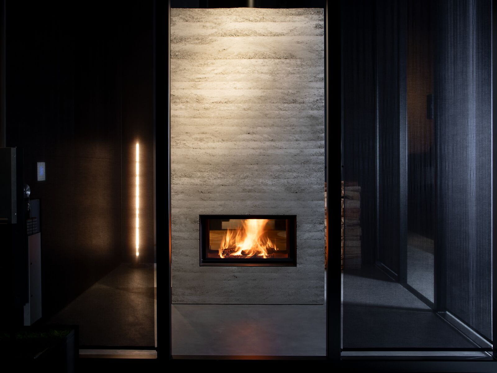 Топочная камера Brunner BKH 5.0 выложена натуральным шамотом светлого цвета: такая футеровка подчеркнёт всю красоту горения. Если же вас больше привлекают тёмные цвета, — боковые стенки топки могут быть выполнены из чёрного чугуна (опционально).