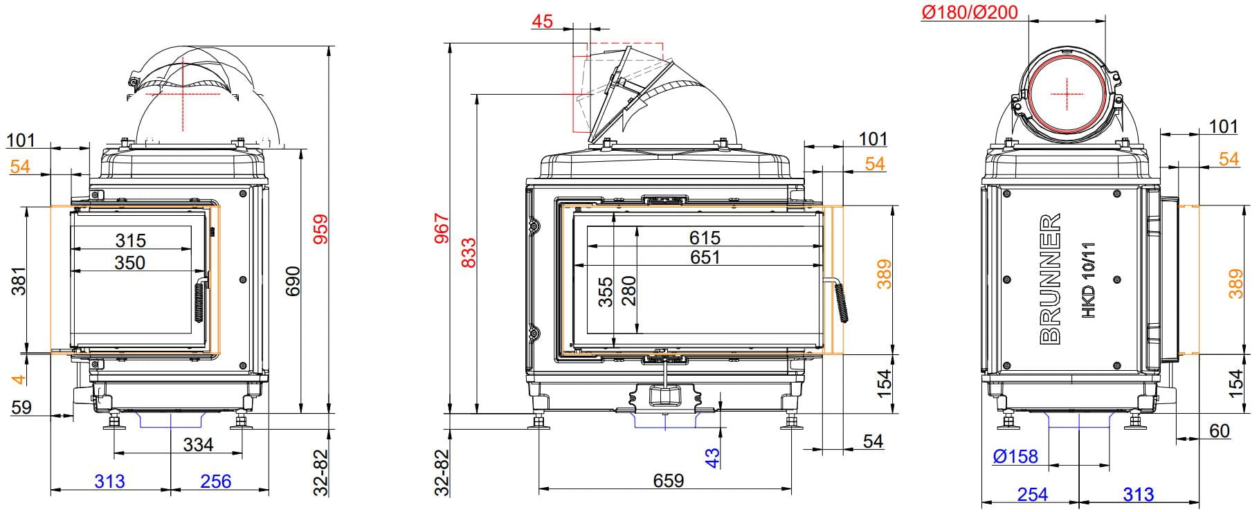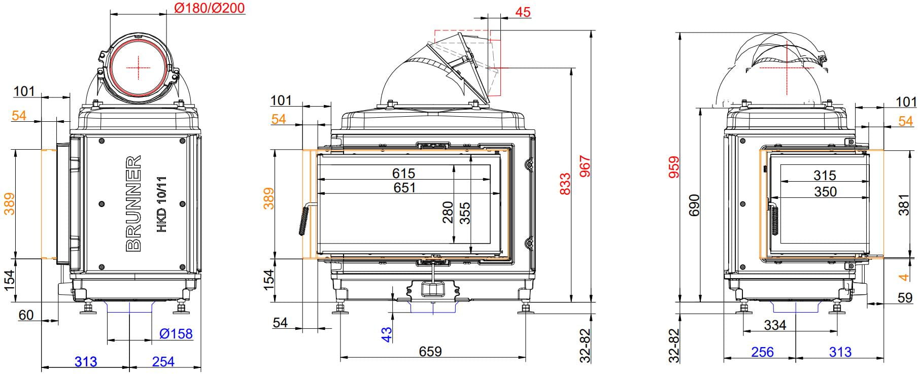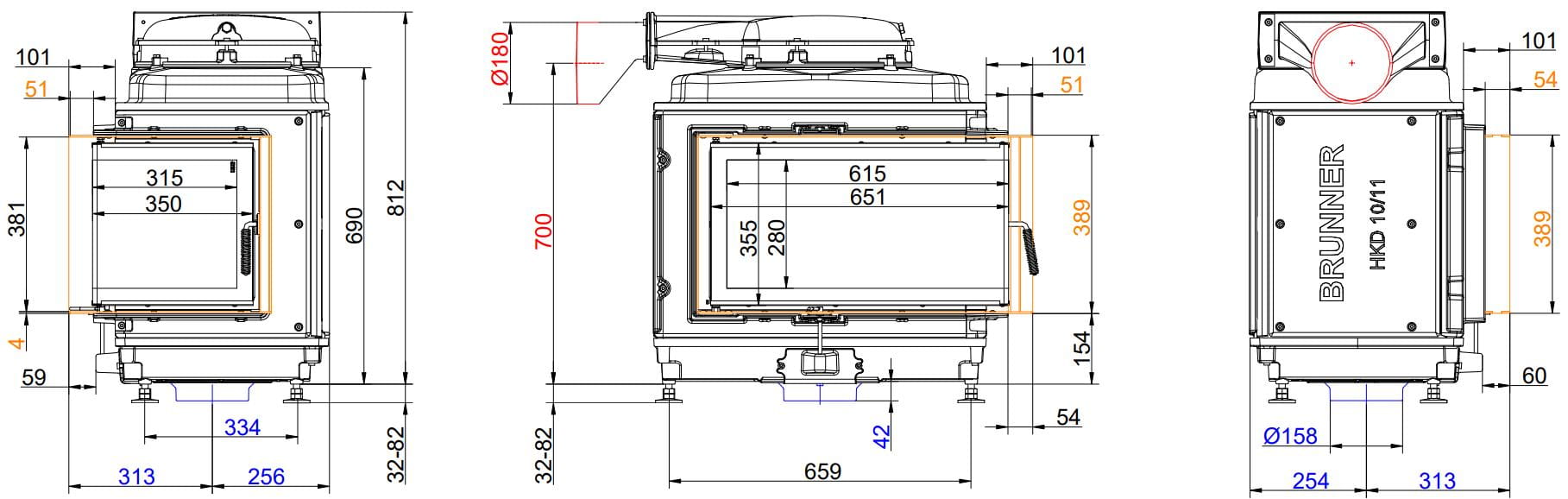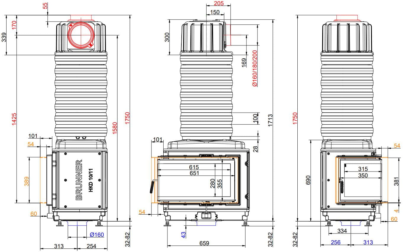 Каминные топки Бруннер HKD — это классические изделия с высокой тепловой инерцией. Корпус очагов HKD выполнен из цельнолитого чугуна соединённого болтами, что обеспечивает более длительную отдачу тепла в помещение. Модельный ряд состоит из топок с разными вариантами стекла: