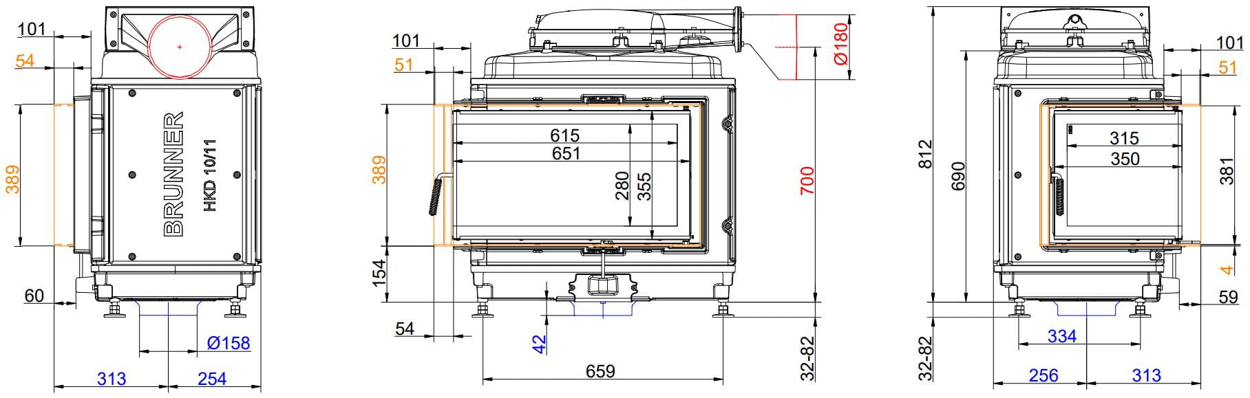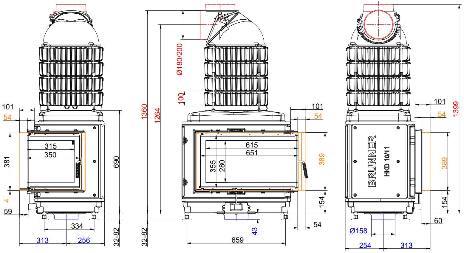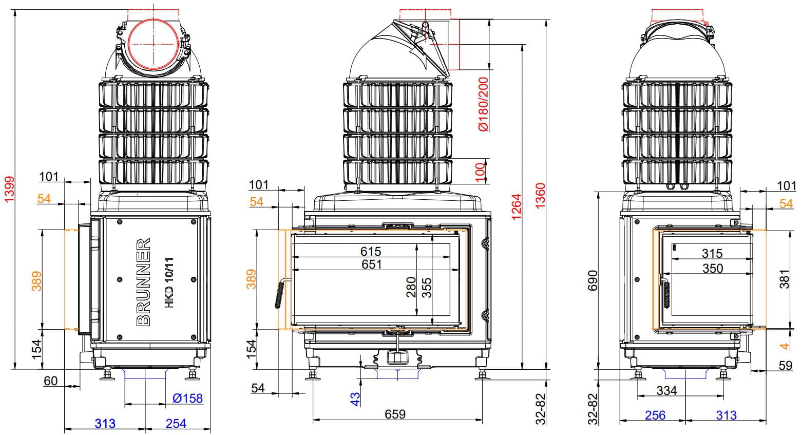 Каминные топки Бруннер HKD — это классические изделия с высокой тепловой инерцией. Корпус очагов HKD выполнен из цельнолитого чугуна соединённого болтами, что обеспечивает более длительную отдачу тепла в помещение. Модельный ряд состоит из топок с разными вариантами стекла: