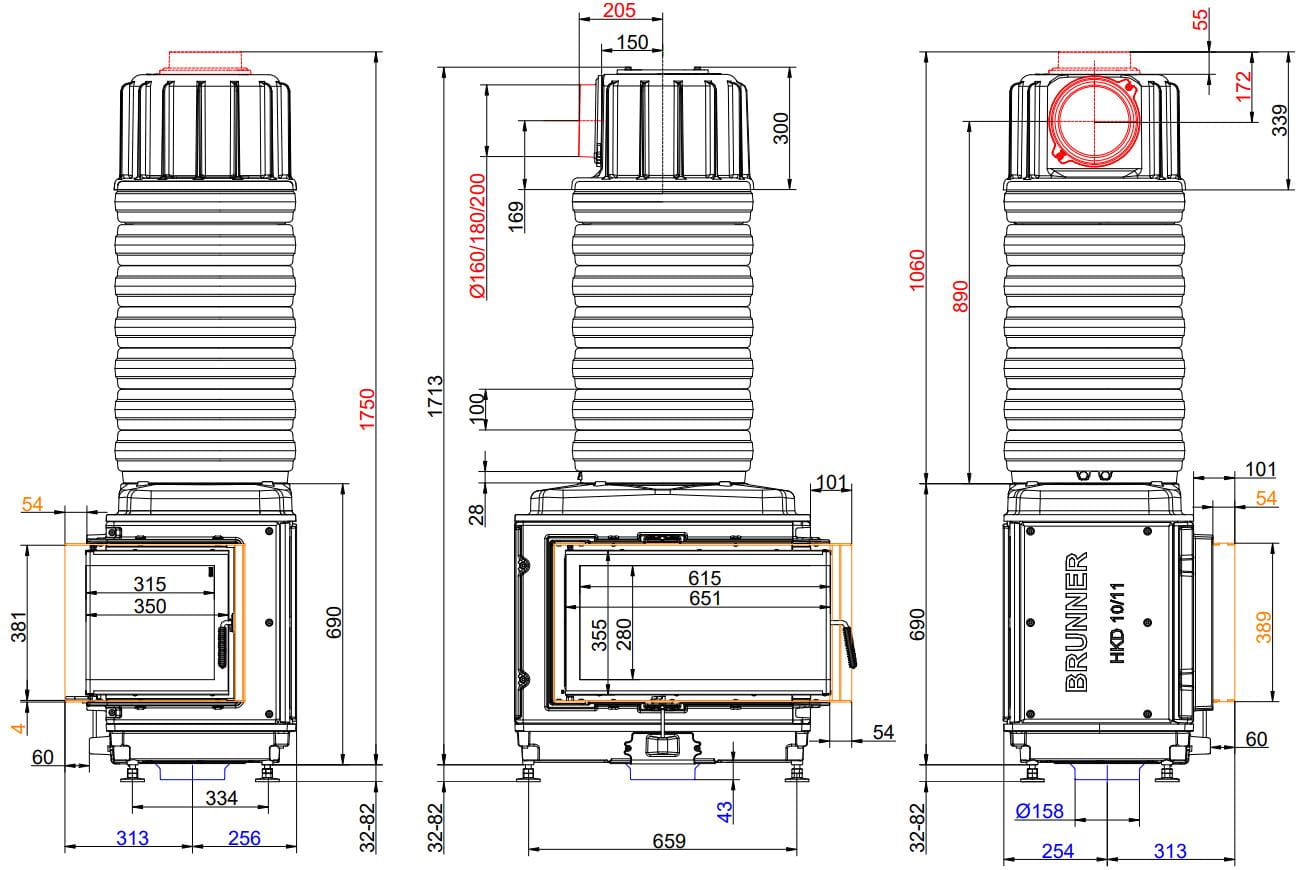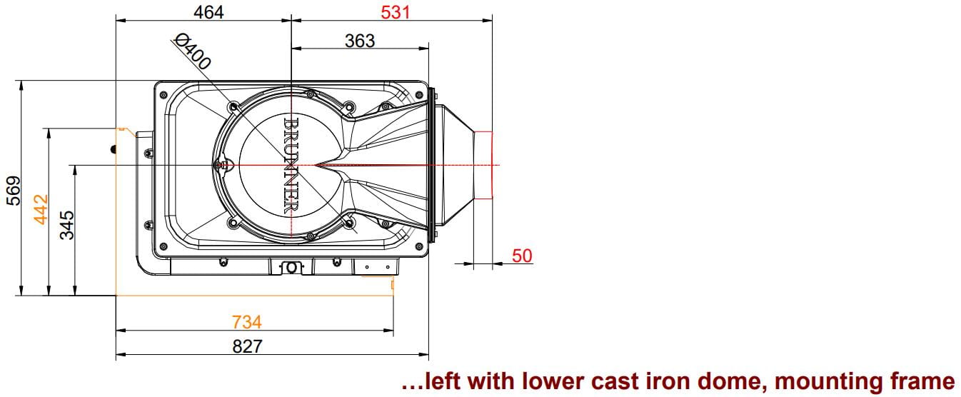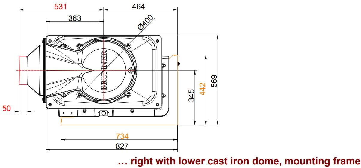 Также все модели Brunner имеют возможность подвода воздуха на горение извне (из соседнего помещения или улицы).
