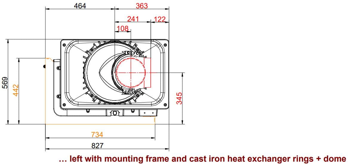 - Монтажная рама, окрашенная в чёрный цвет или выполненная из нержавеющей стали, что делает примыкание топки к облицовке практически незаметным.
