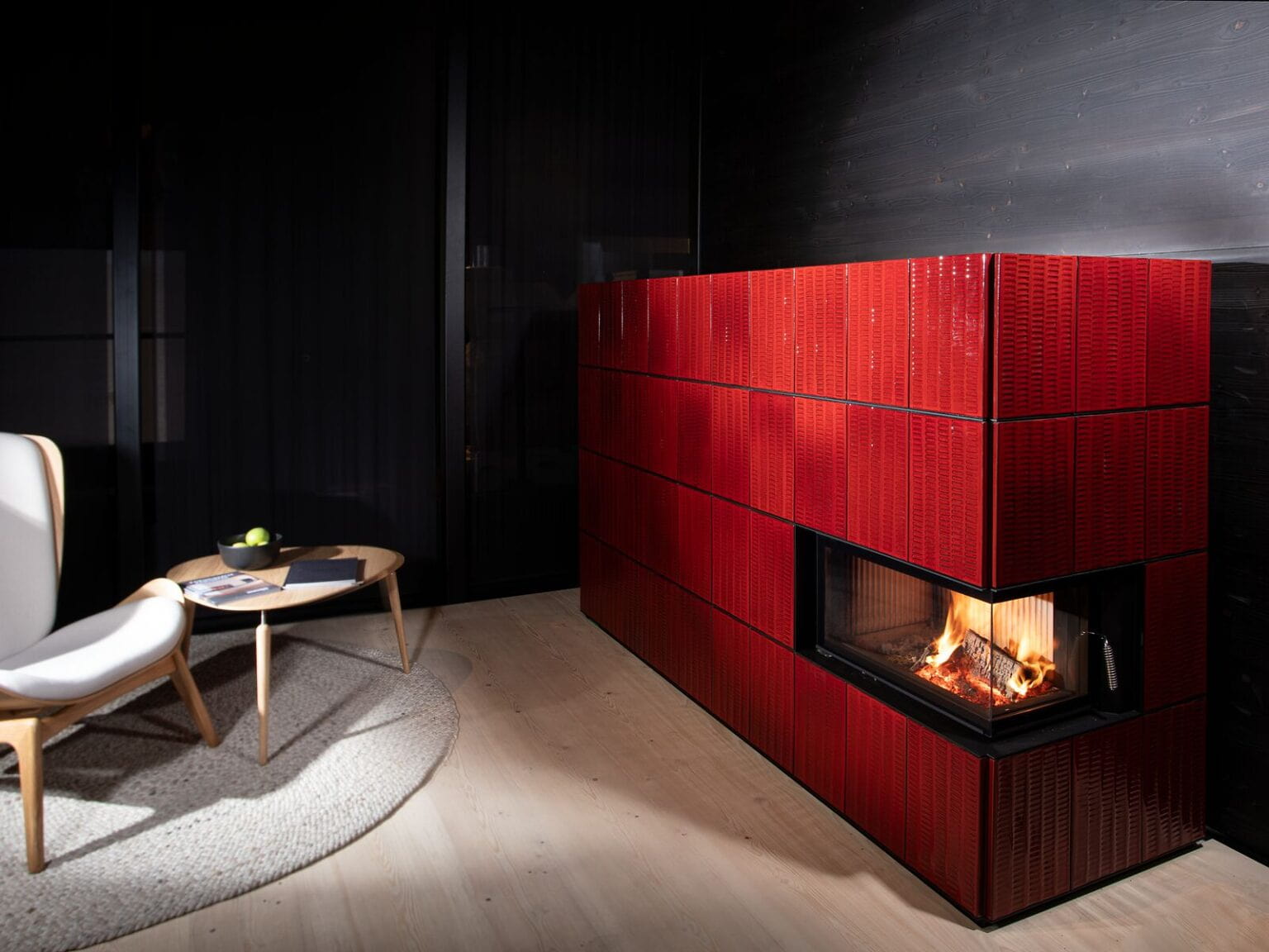Абсолютное большинство тепловых лучей проходит через керамическое стекло в помещение. Расстояние для размещения мебели или горючих элементов от топки должно составлять не менее 120 см.