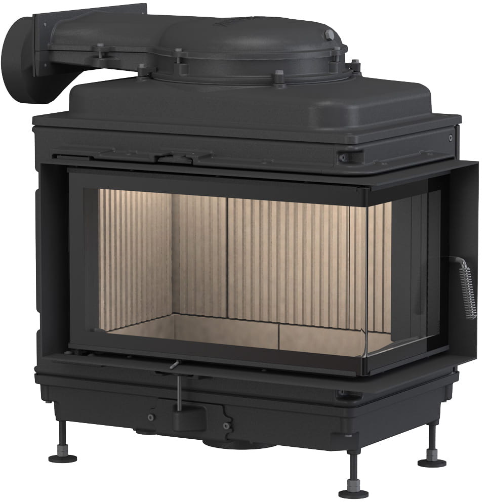 Номинальная мощность равна 9 кВт, чего хватает для обогрева помещения в 225 м³. У топки угловое жаропрочное стекло, обрамление вокруг него можно выбрать самостоятельно. Дверца с боковым открыванием. Ширина дверцы с фронтальной стороны — 651 мм, с боковой — 350 мм, высота — 355 мм.
