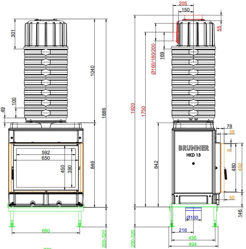 Каминная топка Brunner HKD 13 (Бруннер HKD 13)