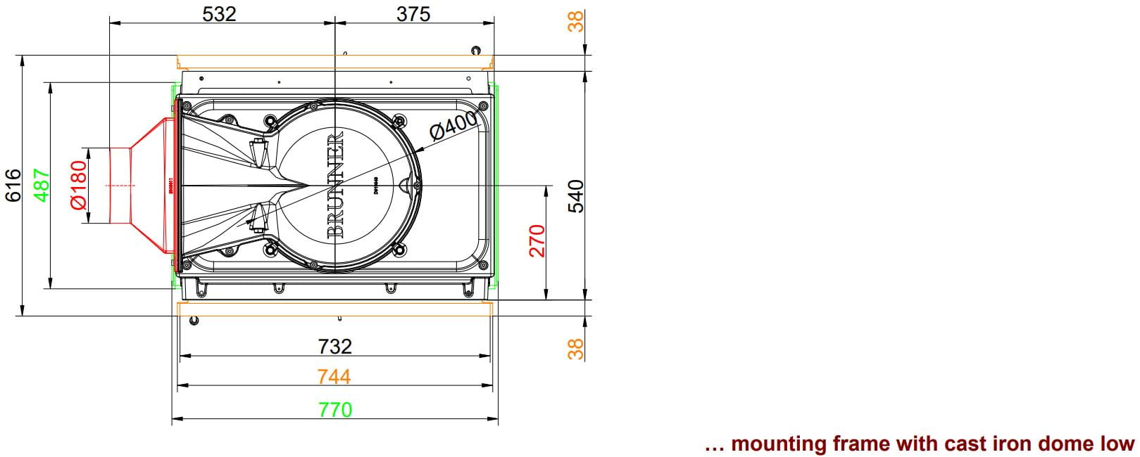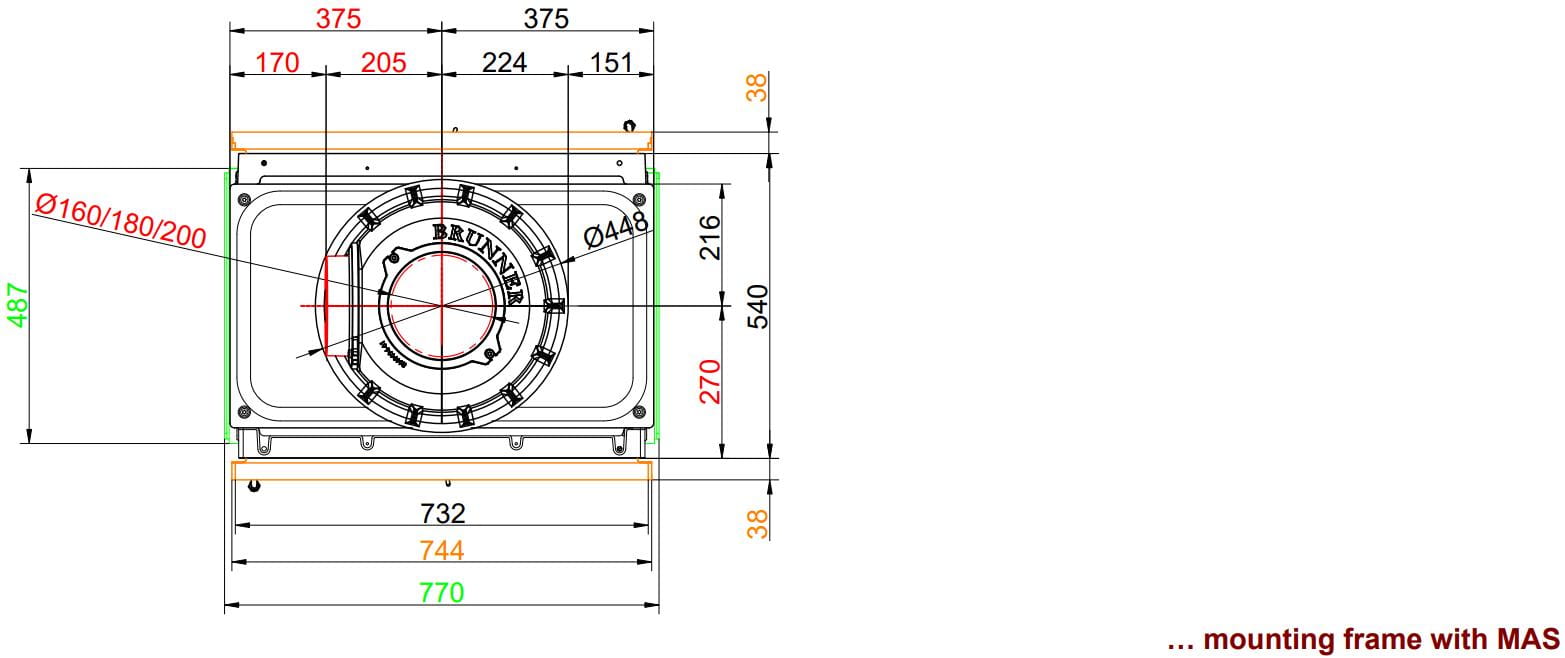 Также все модели Brunner имеют возможность подвода воздуха на горение извне (из соседнего помещения или улицы).