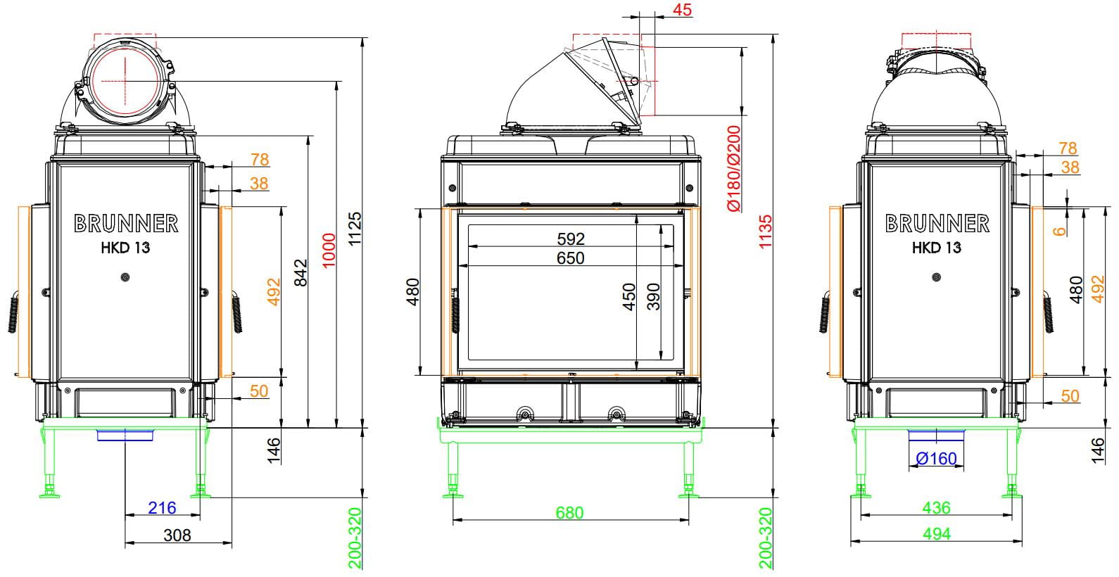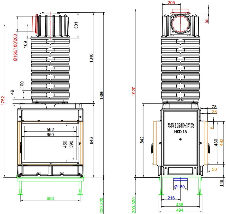 Каминные топки Бруннер HKD — это классические изделия с высокой тепловой инерцией. Корпус очагов HKD выполнен из цельнолитого чугуна соединённого болтами, что обеспечивает более длительную отдачу тепла в помещение. Модельный ряд состоит из топок с разными вариантами стекла: