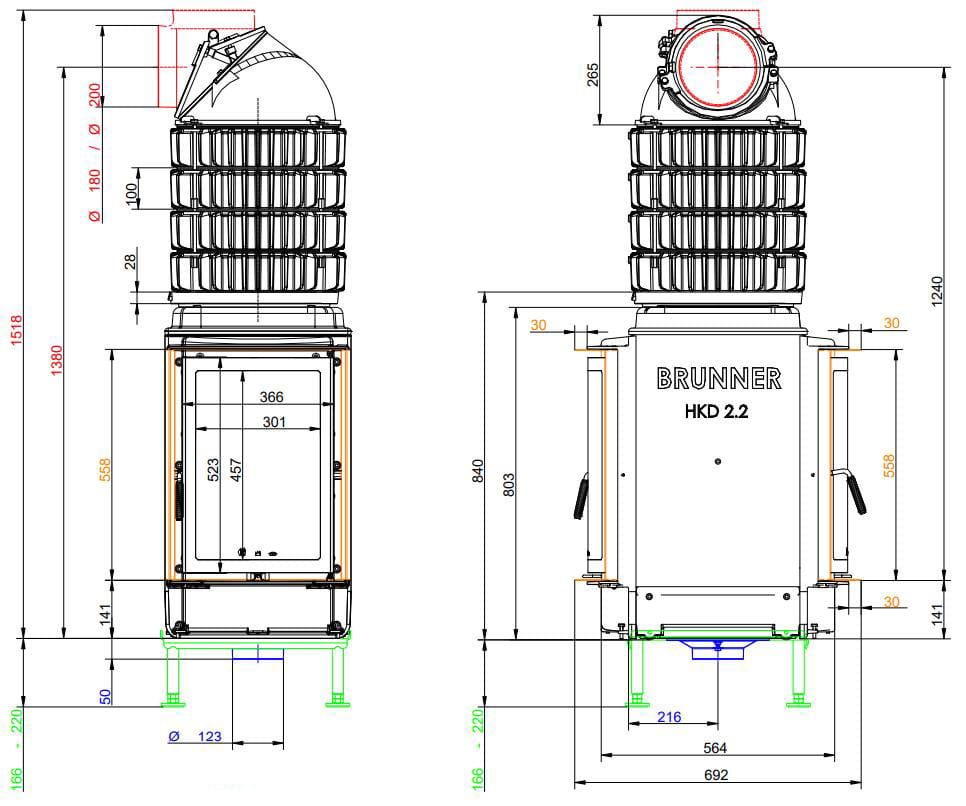 Также все модели Brunner имеют возможность подвода воздуха на горение извне (из соседнего помещения или улицы).