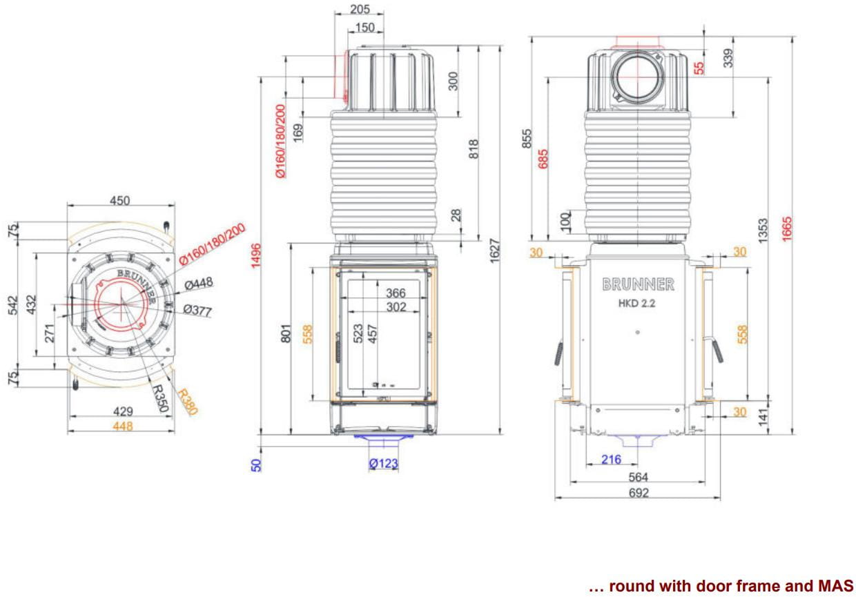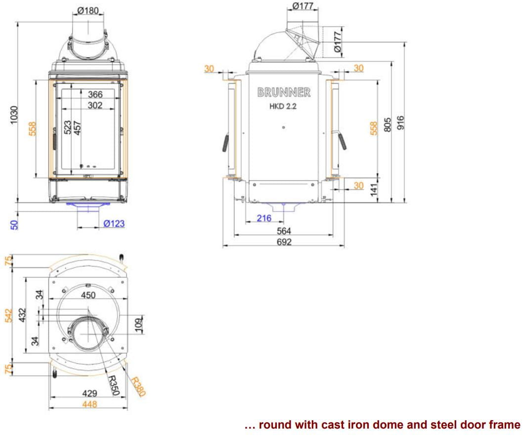 Каминная топка Brunner HKD 2.2 Round Tunnel (Бруннер HKD 2.2 Round Туннель)