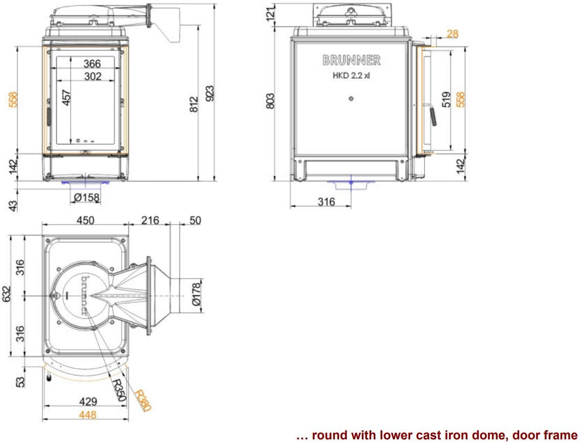 Каминная топка Brunner HKD 2.2 XL Round (Бруннер HKD 2.2 XL Round)