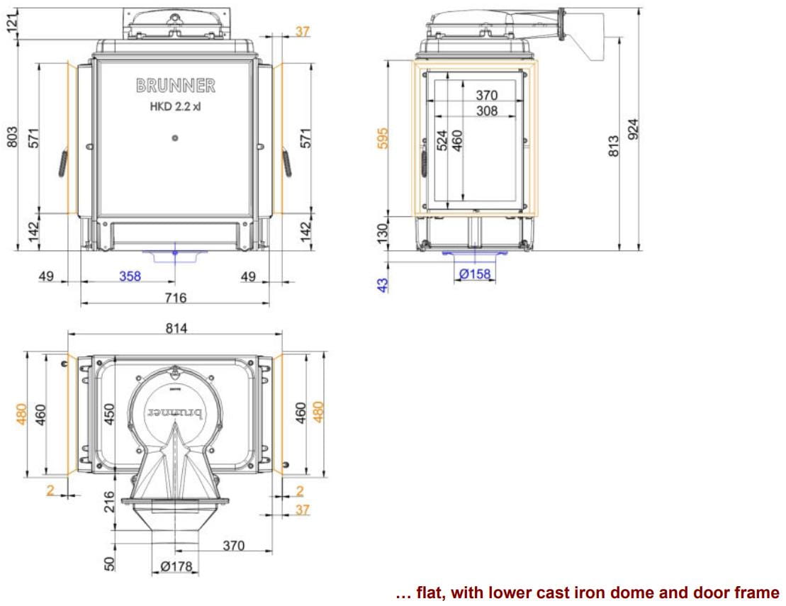 Также все модели Brunner имеют возможность подвода воздуха на горение извне (из соседнего помещения или улицы).