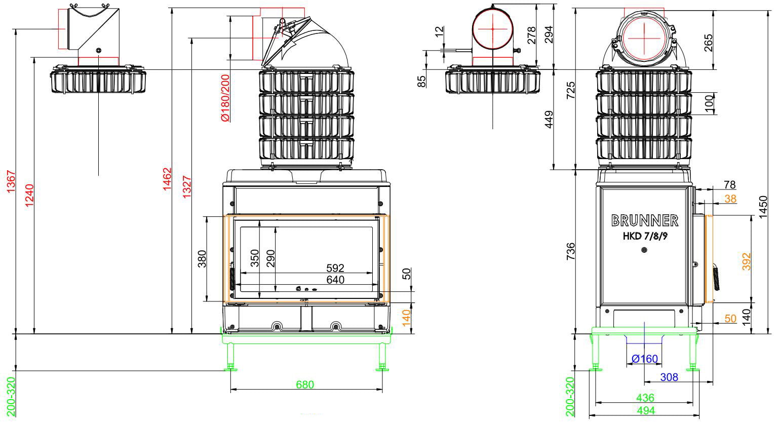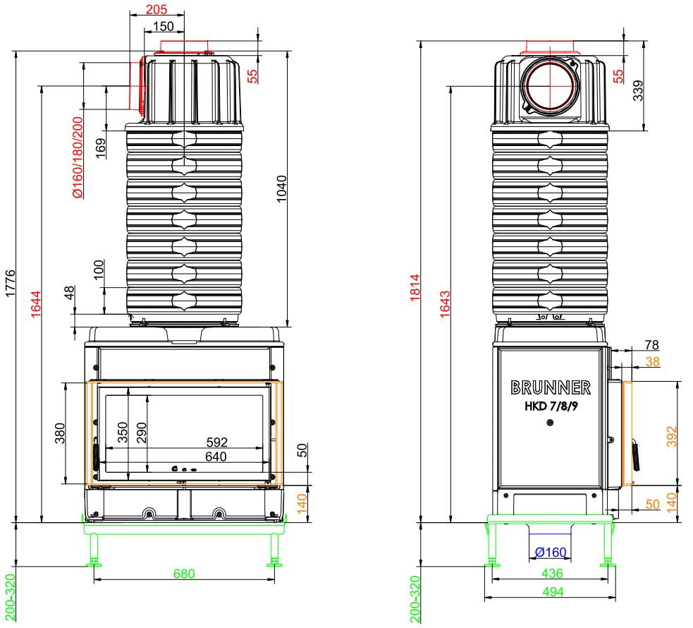 Каминные топки Бруннер HKD — это классические изделия с высокой тепловой инерцией. Корпус очагов HKD выполнен из цельнолитого чугуна соединённого болтами, что обеспечивает более длительную отдачу тепла в помещение. Модельный ряд состоит из топок с разными вариантами стекла: