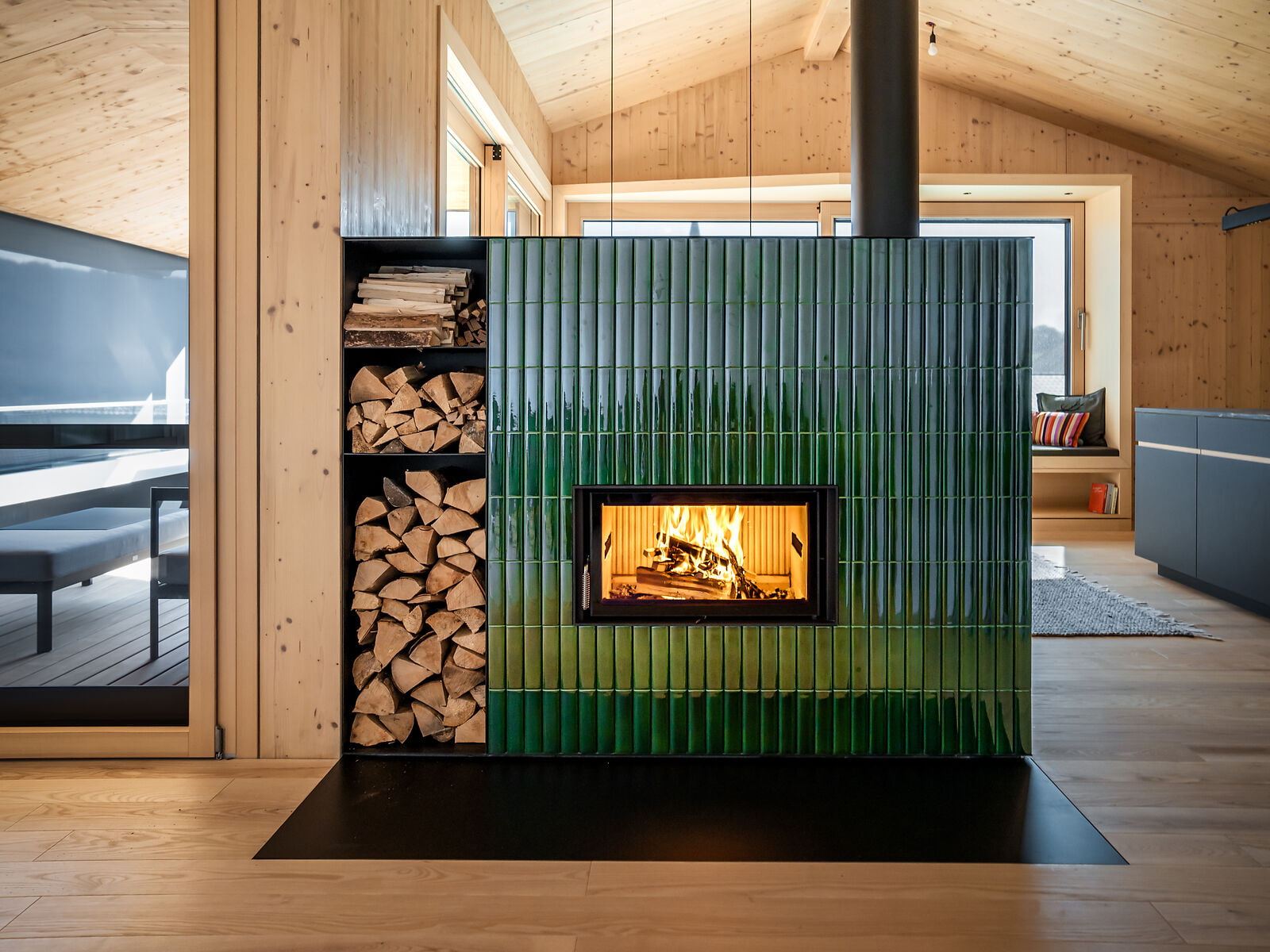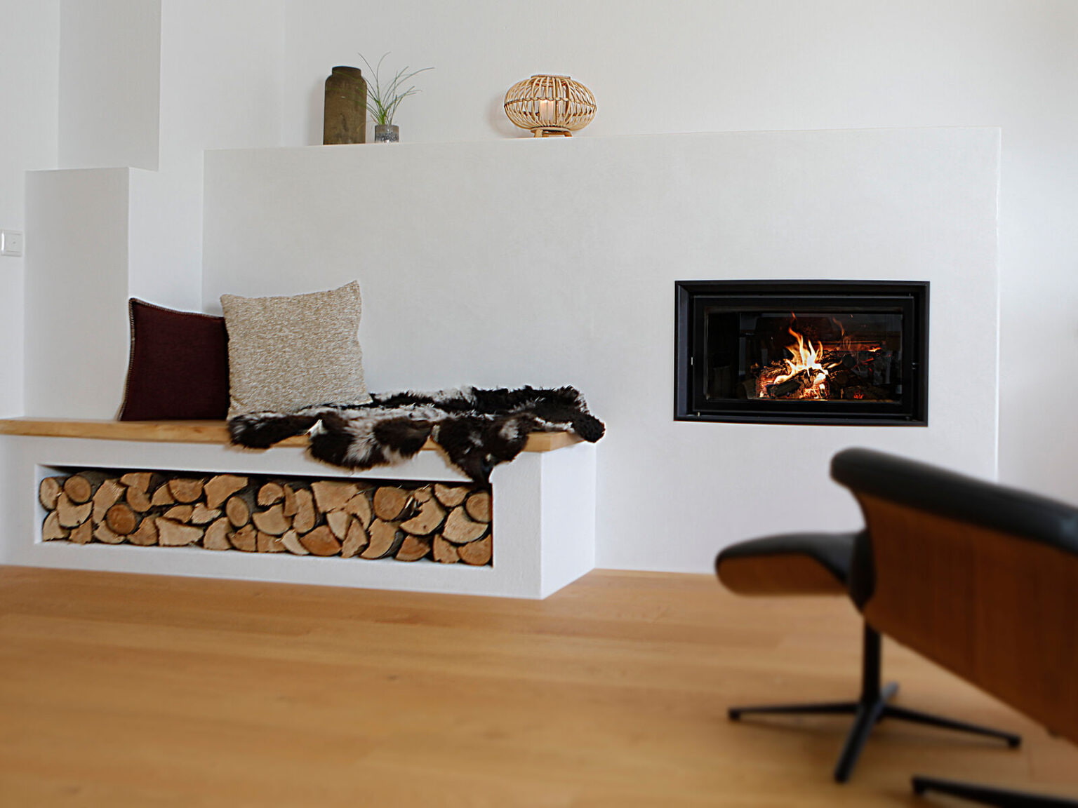 В топках Brunner HKD используется подовая система горения: без колосника и зольного ящика. Благодаря откалиброванной подаче воздуха дрова сгорают особенно чисто и эффективно.