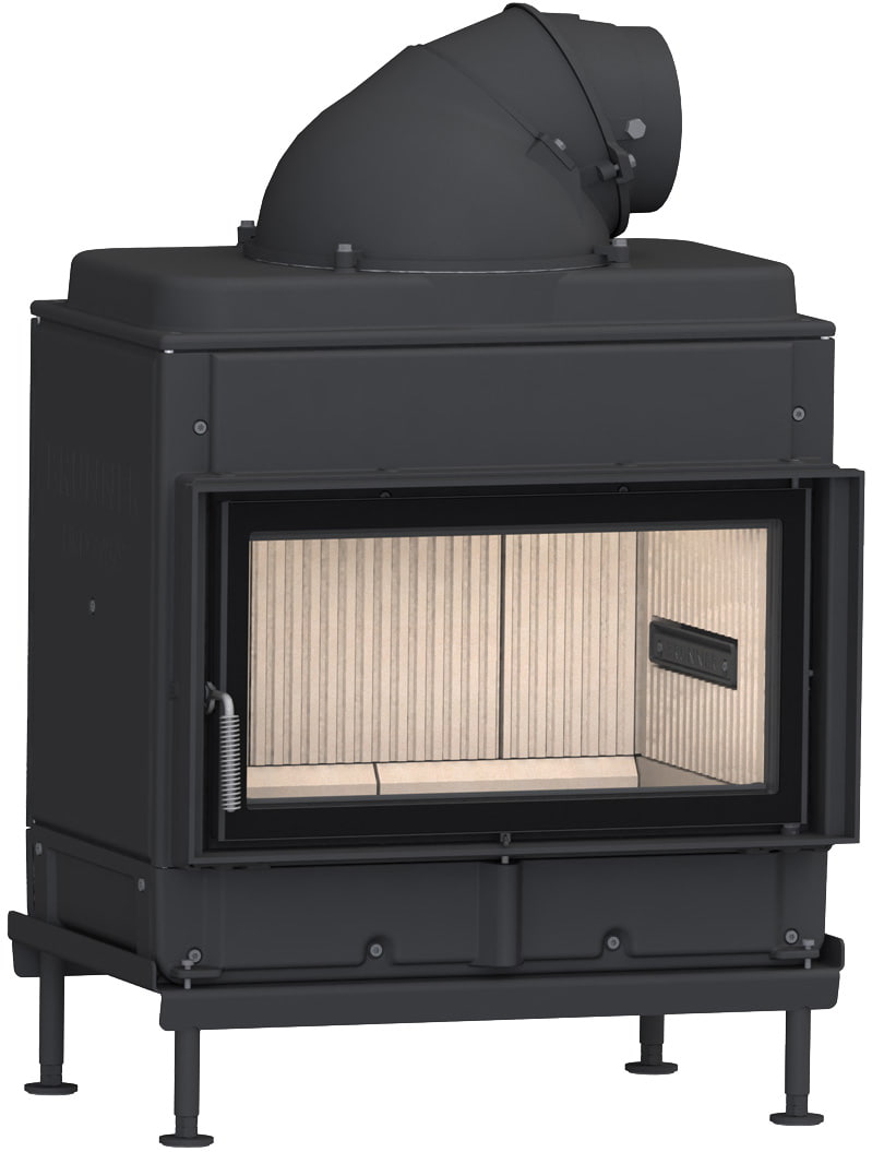 Номинальная мощность равна 9 кВт, чего хватает для обогрева помещения в 225 м³. У топки прямое жаропрочное стекло, обрамление вокруг него можно выбрать самостоятельно. Дверца с боковым открыванием. Ширина дверцы — 640 мм, высота — 350 мм.