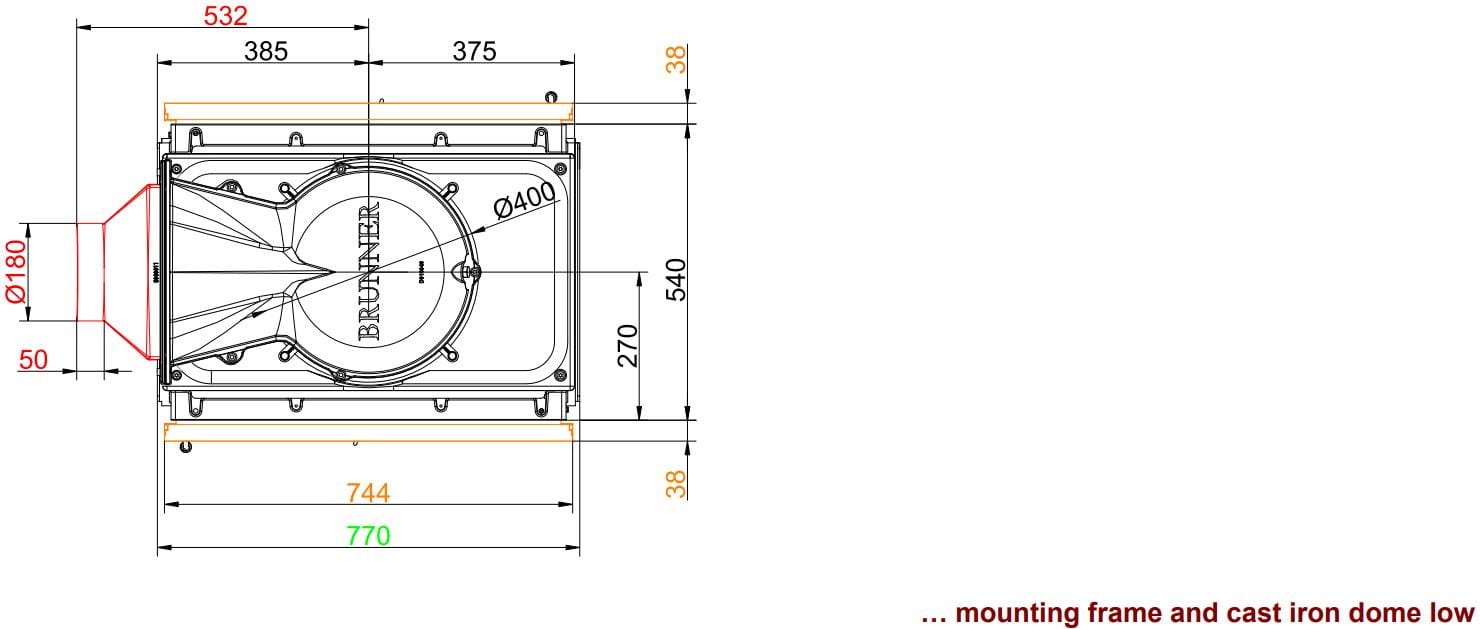 - Низкий чугунный дымосборник — вариант с уменьшенной высотой дымосборника.