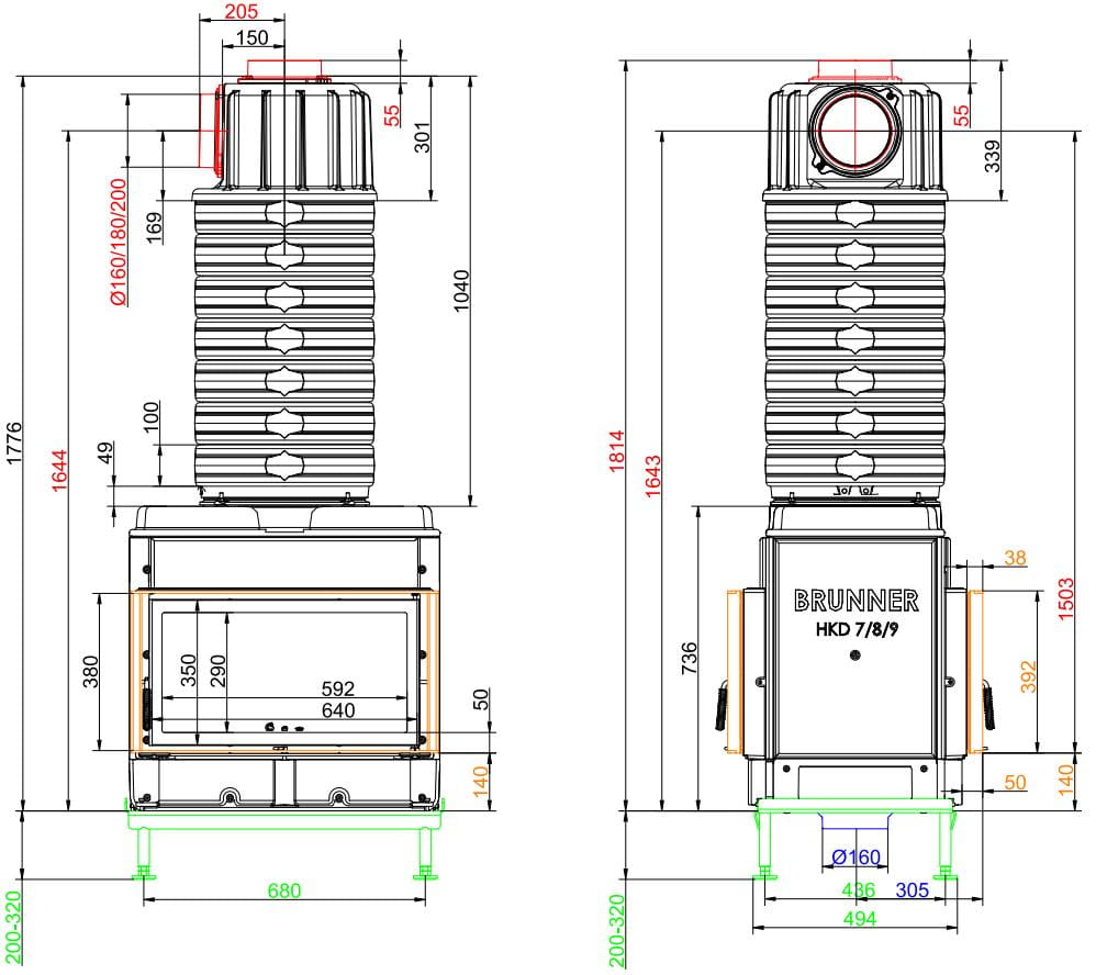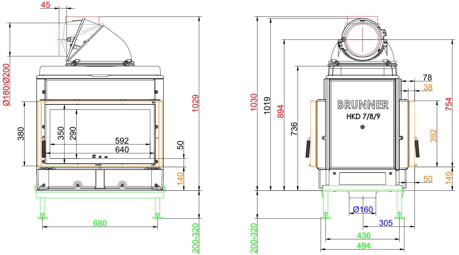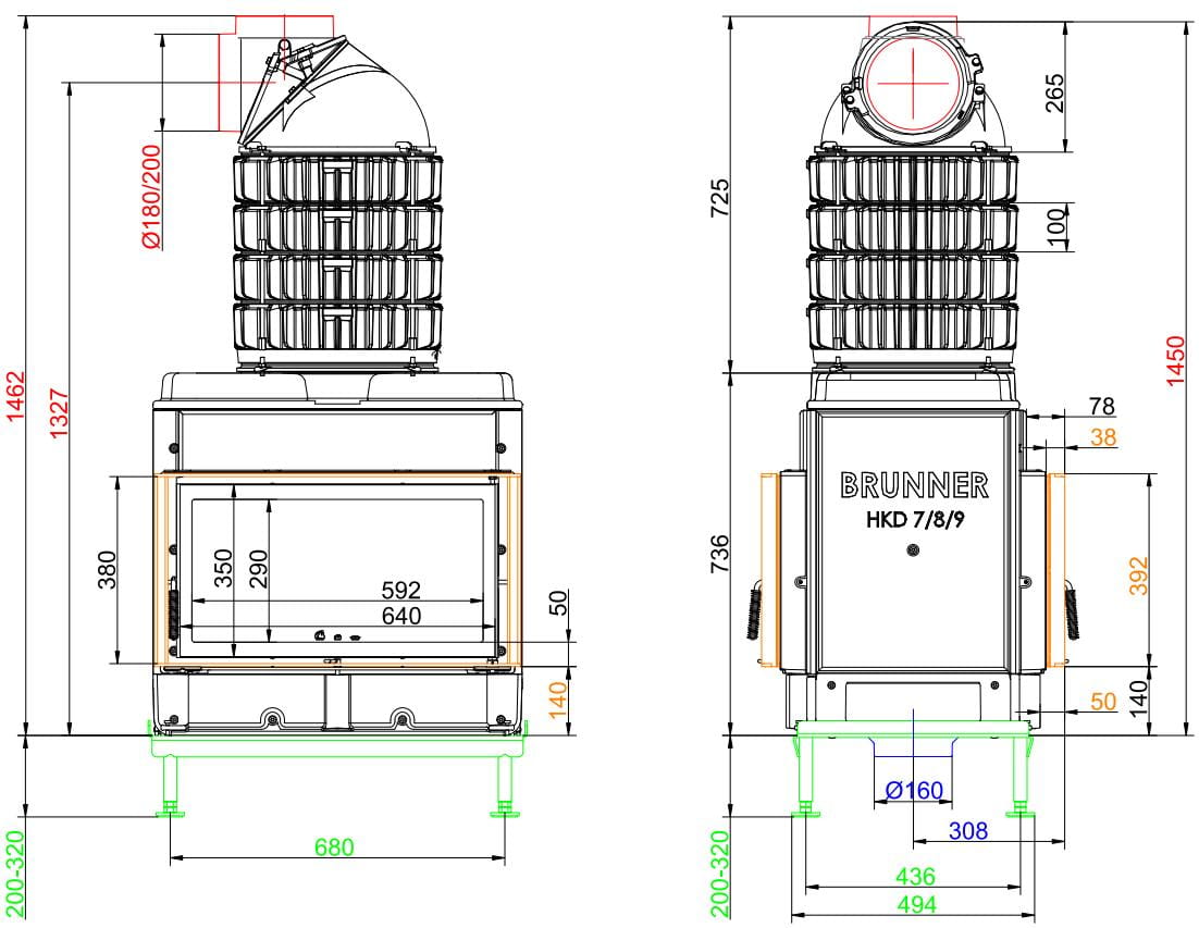 Каминные топки Бруннер HKD — это классические изделия с высокой тепловой инерцией. Корпус очагов HKD выполнен из цельнолитого чугуна соединённого болтами, что обеспечивает более длительную отдачу тепла в помещение. Модельный ряд состоит из топок с разными вариантами стекла: