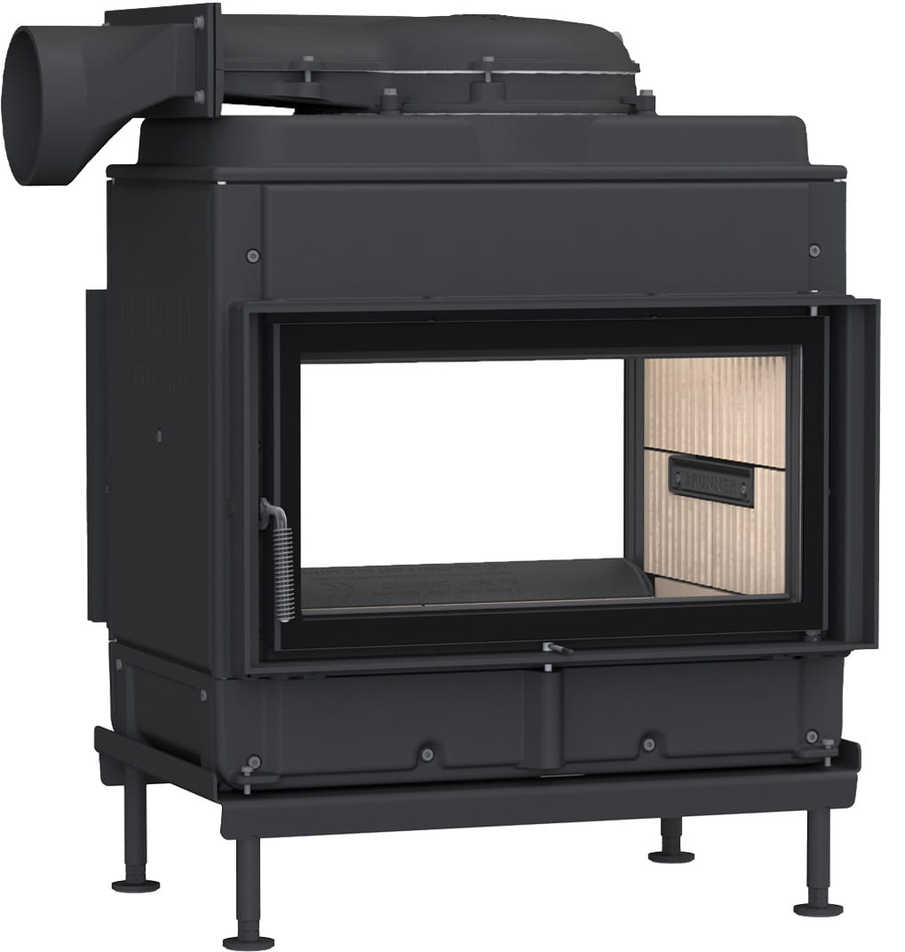 В топках Brunner используется термостойкое стекло из стеклокерамики. Это специальная разработка, рассчитанная на высокие температуры и механические нагрузки, возникающие в камере сгорания. На выбор покупателя доступно несколько вариантов остекления:
