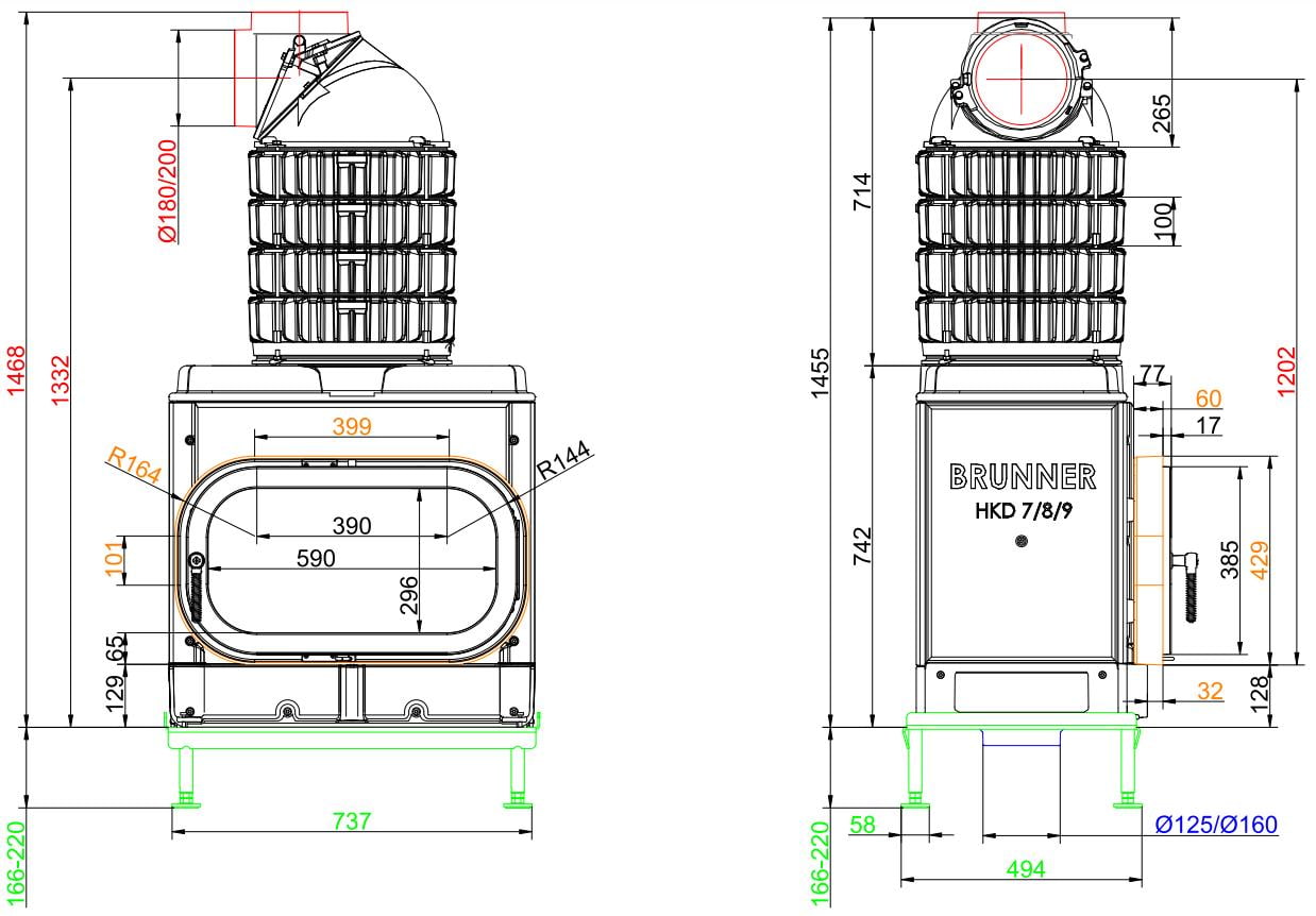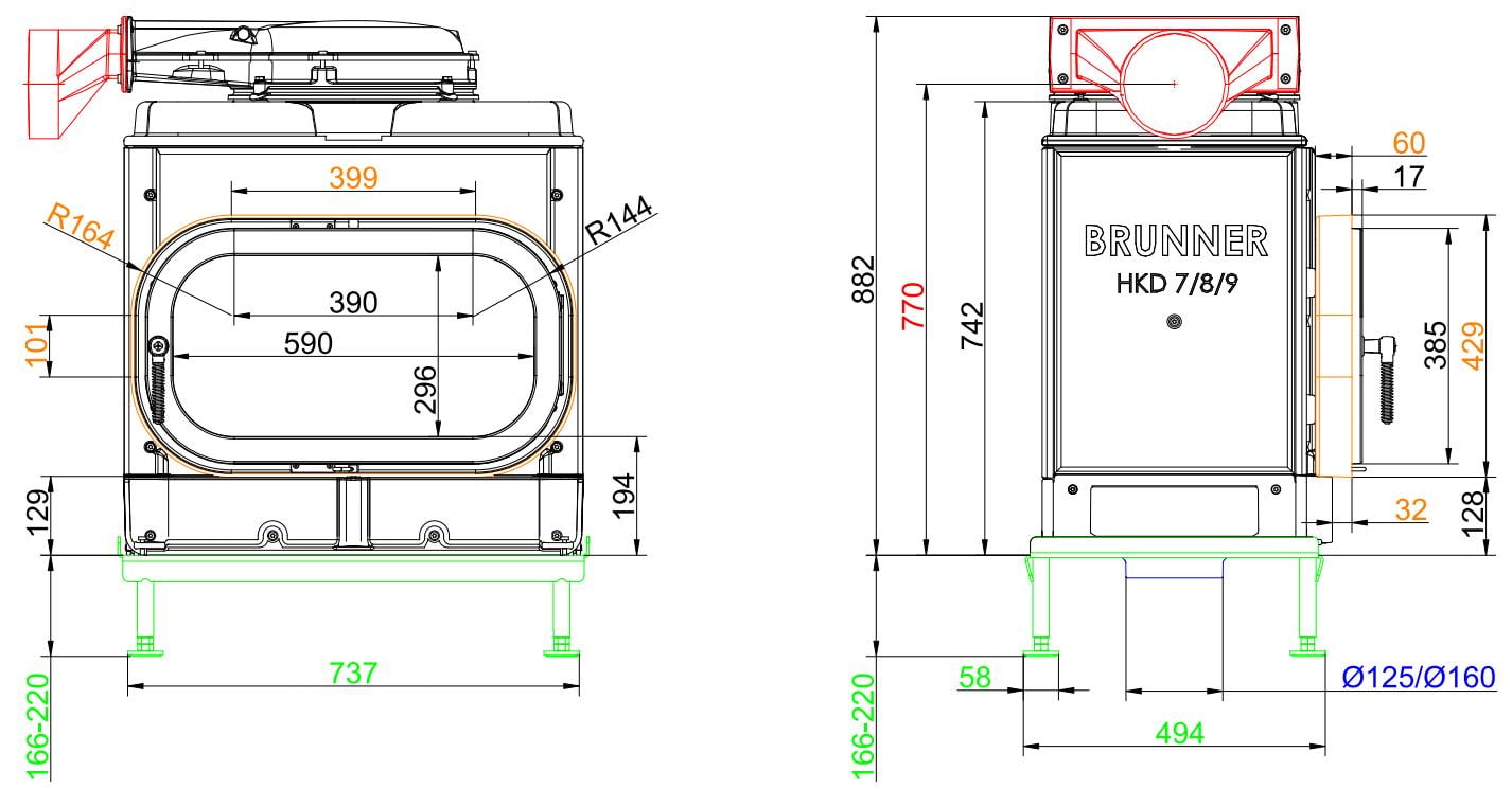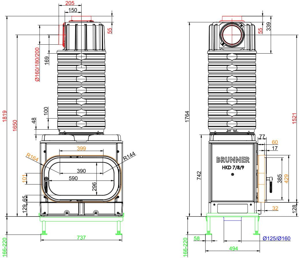 Каминные топки Бруннер HKD — это классические изделия с высокой тепловой инерцией. Корпус очагов HKD выполнен из цельнолитого чугуна соединённого болтами, что обеспечивает более длительную отдачу тепла в помещение. Модельный ряд состоит из топок с разными вариантами стекла:
