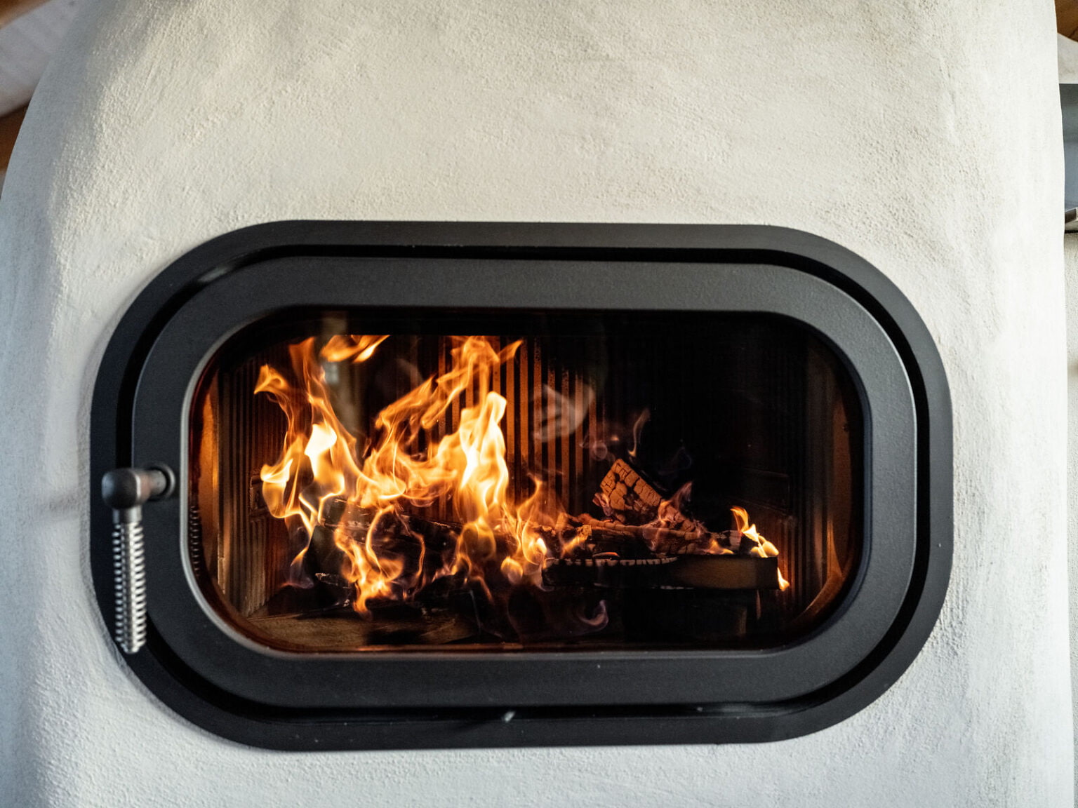 Снижает температуру поверхности внешнего стекла на 100-200 °C, что делает нахождение у топки более безопасным и комфортным.