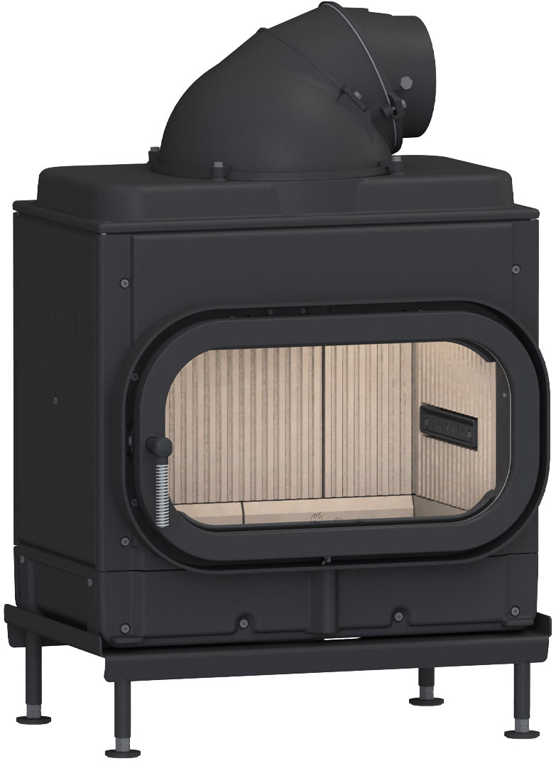 Топочная камера футерована шамотом светлого цвета. Модель с подовой (безколосниковой) системой горения. Топка обладает всеми современными технологиями горения: вторичный дожиг газов и система "Чистое стекло". Очаг с возможностью притока воздуха извне. Для отвода продуктов сгорания необходим дымоход диаметром 180 мм. Гарантия — 5 лет.