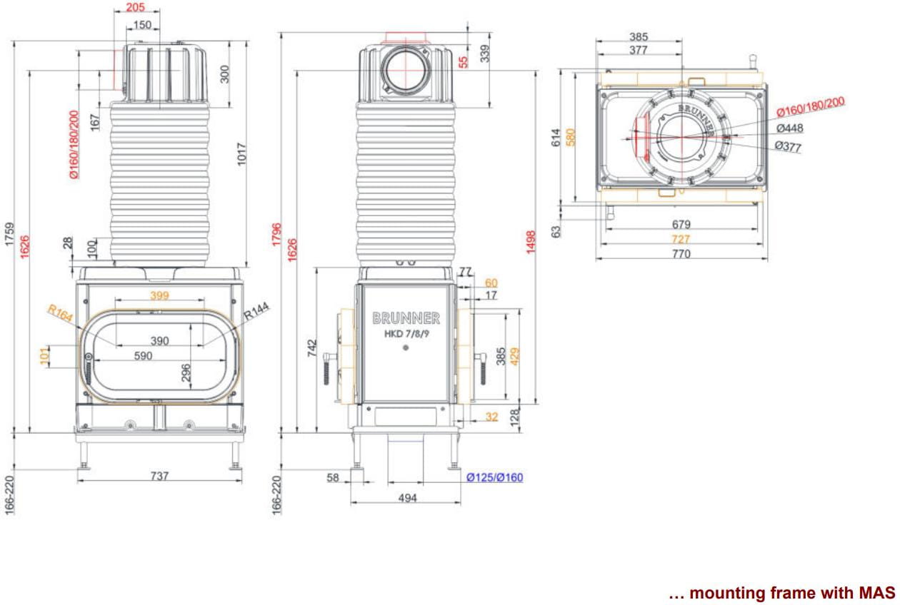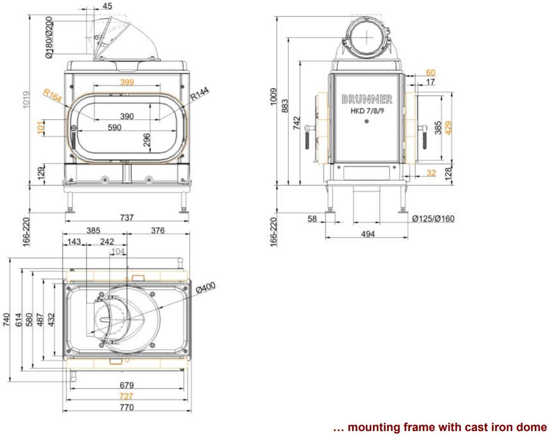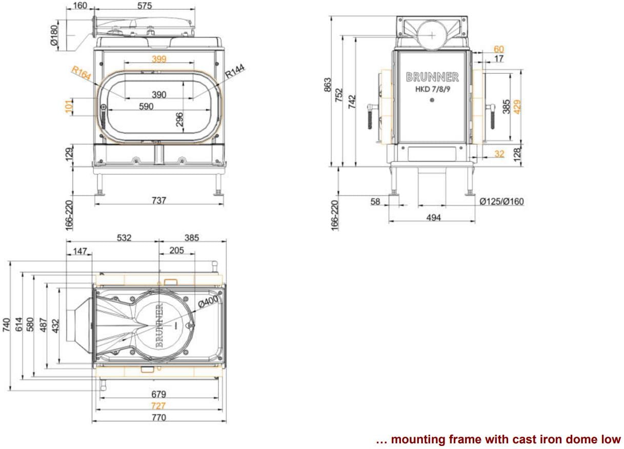 Каминные топки Бруннер HKD — это классические изделия с высокой тепловой инерцией. Корпус очагов HKD выполнен из цельнолитого чугуна соединённого болтами, что обеспечивает более длительную отдачу тепла в помещение. Модельный ряд состоит из топок с разными вариантами стекла: