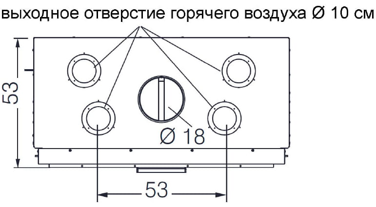 - Вариант V — конвекционный кожух с возможностью распределения тепла по комнатам + вентилятор принудительной вентиляции мощностью 800 м³/ч с возможностью управления пультом Д/У.