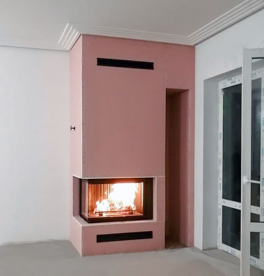 В топках используется термостойкое стекло, способное выдержать температуру до 800° C. Оно может быть прямым, двухсторонним или призматическим. Дверца оснащена подъёмным механизмом. Футеровкой топочной камеры выступает чугун. На дне топки колосник с расположенным под ним зольным ящиком.