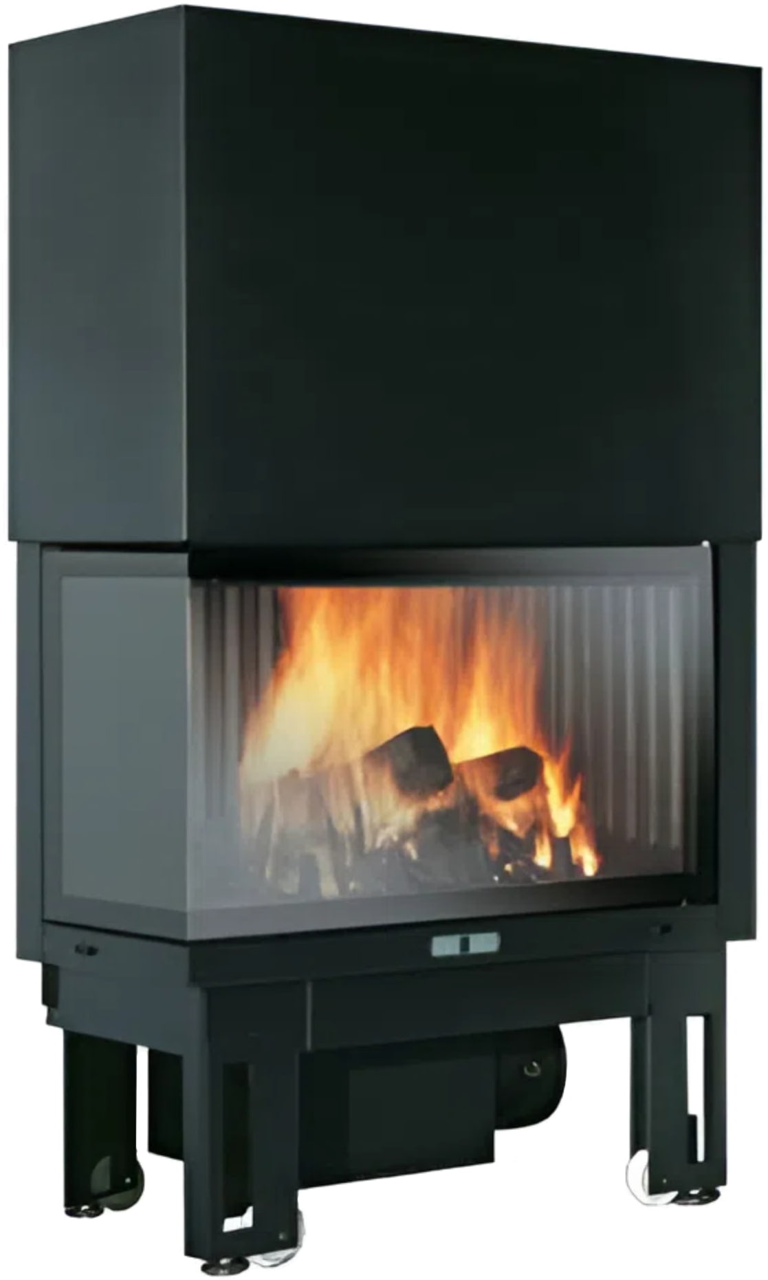Каминная топка Edilkamin Titano Titano UP DX N (ЭдилКамин Титано UP DX Н) — это высокоэффективная модель с толстым стальным корпусом. Мощность устройства составляет 15.2 кВт, чего хватает для обогрева помещения в 395 м³. КПД — 78%. У топки единое угловое жаропрочное стекло. Дверца с подъёмным механизмом. Вторая часть стекла расположена слева (DX). Ширина дверцы с фронтальной стороны — 850 мм, высота — 500 мм.