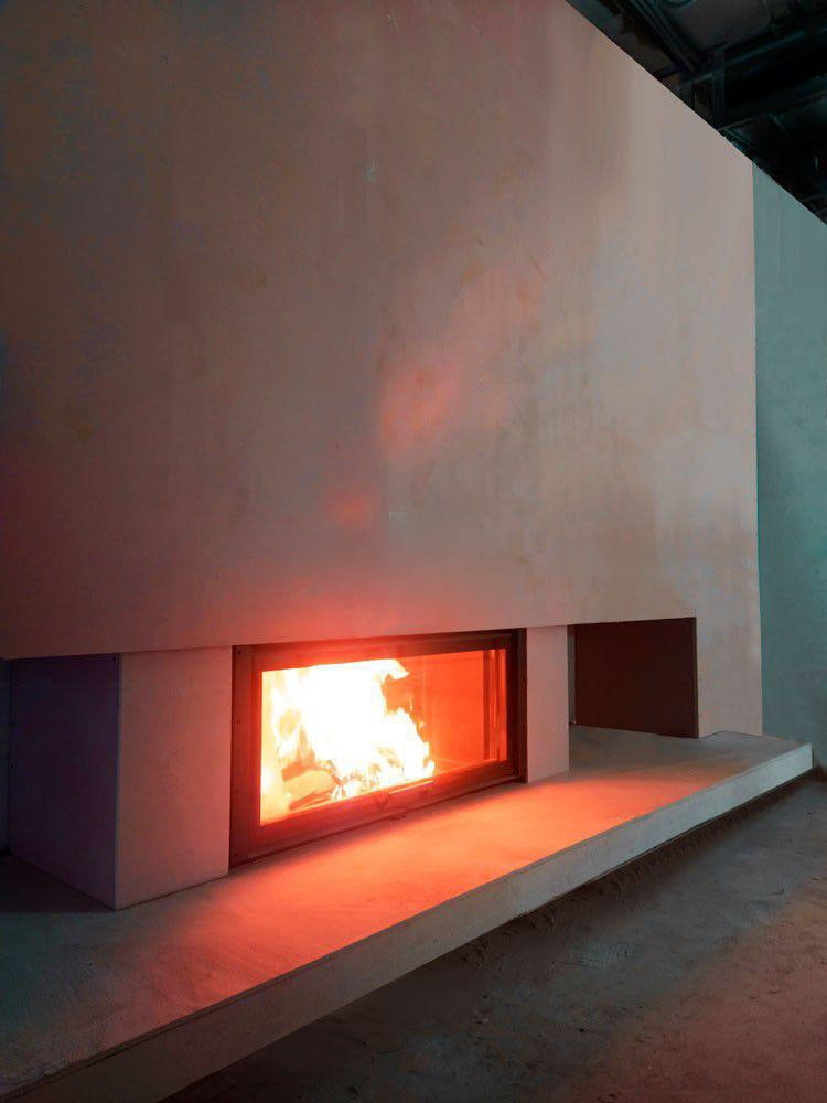 В топках используется термостойкое стекло, способное выдержать температуру до 800° C. Оно может быть прямым, двусторонним или трехсторонним. Минимальная высота расположения очага от пола — порядка 120 мм. Дверца оснащена подъёмным механизмом с современной технологией скольжения: салазки из нержавеющей стали окрашены в черный цвет, оснащены спиральными пружинами с термостойкой смазкой; перпендикулярный надвиг для безупречной герметичности; 12-слойный металлический каркас.