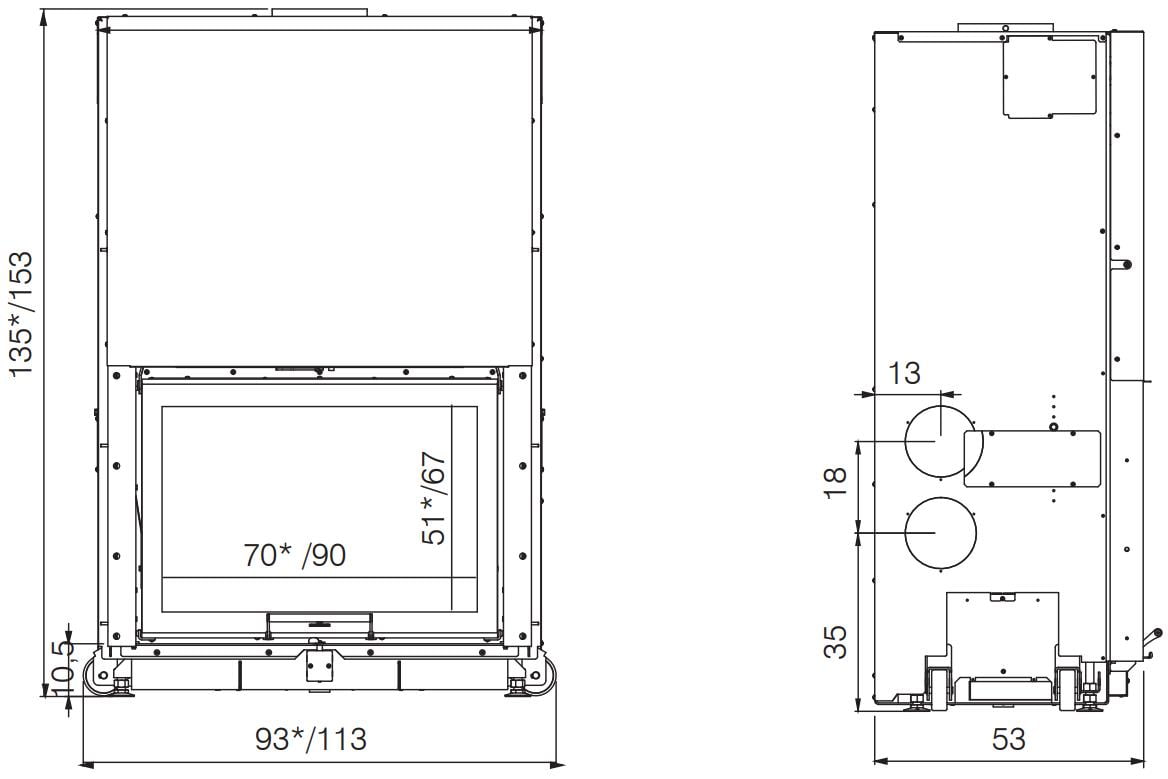 Каминная топка Edilkamin Windo 90 N, Bianco (ЭдилКамин Виндо 90 Н, Bianco) — это высокоэффективная модель с толстым стальным корпусом. Версия N — натуральная конвекция, без вентилятора. Мощность устройства составляет 17.6 кВт, чего хватает для обогрева помещения в 460 м³. КПД — 81%. У топки прямое жаропрочное стекло. Дверца с подъёмным механизмом. Ширина дверцы — 900 мм, высота — 670 мм.