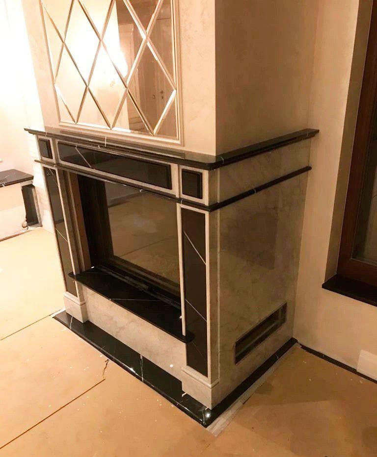 В топках используется термостойкое стекло, способное выдержать температуру до 800° C. Оно может быть прямым, двусторонним или трехсторонним. Минимальная высота расположения очага от пола — порядка 120 мм. Дверца оснащена подъёмным механизмом с современной технологией скольжения: салазки из нержавеющей стали окрашены в черный цвет, оснащены спиральными пружинами с термостойкой смазкой; перпендикулярный надвиг для безупречной герметичности; 12-слойный металлический каркас.