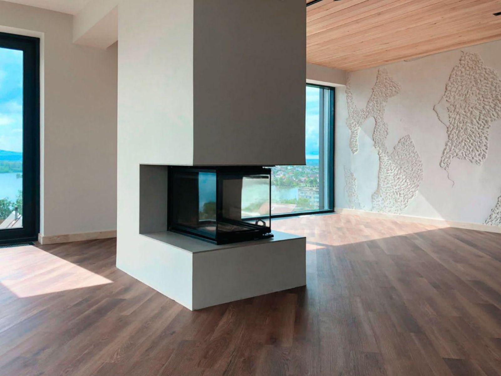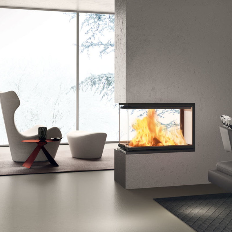 В топках используется термостойкое стекло, способное выдержать температуру до 800° C. Оно может быть прямым, двусторонним или трехсторонним. Минимальная высота расположения очага от пола — порядка 120 мм. Дверца оснащена подъёмным механизмом с современной технологией скольжения: салазки из нержавеющей стали окрашены в черный цвет, оснащены спиральными пружинами с термостойкой смазкой; перпендикулярный надвиг для безупречной герметичности; 12-слойный металлический каркас.