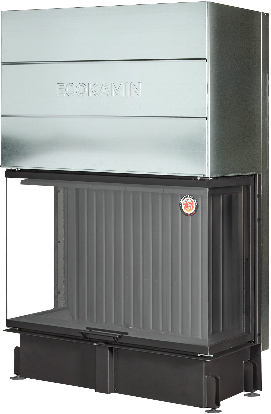 Каминная топка ЭкоКамин Дельта 1200x800x450 PB (EcoKamin Дельта 1200x800x450 PB) с подъемным механизмом двери и тремя стеклами имеет достаточно большой обзор на огонь с любого угла комнаты. Максимальная мощность достигает отметки в 30 кВт, чего хватает для обогрева помещения до 450 м³. Внутри топка футерована чёрным литьевым шамотом в виде ламелей. Горение подовое.