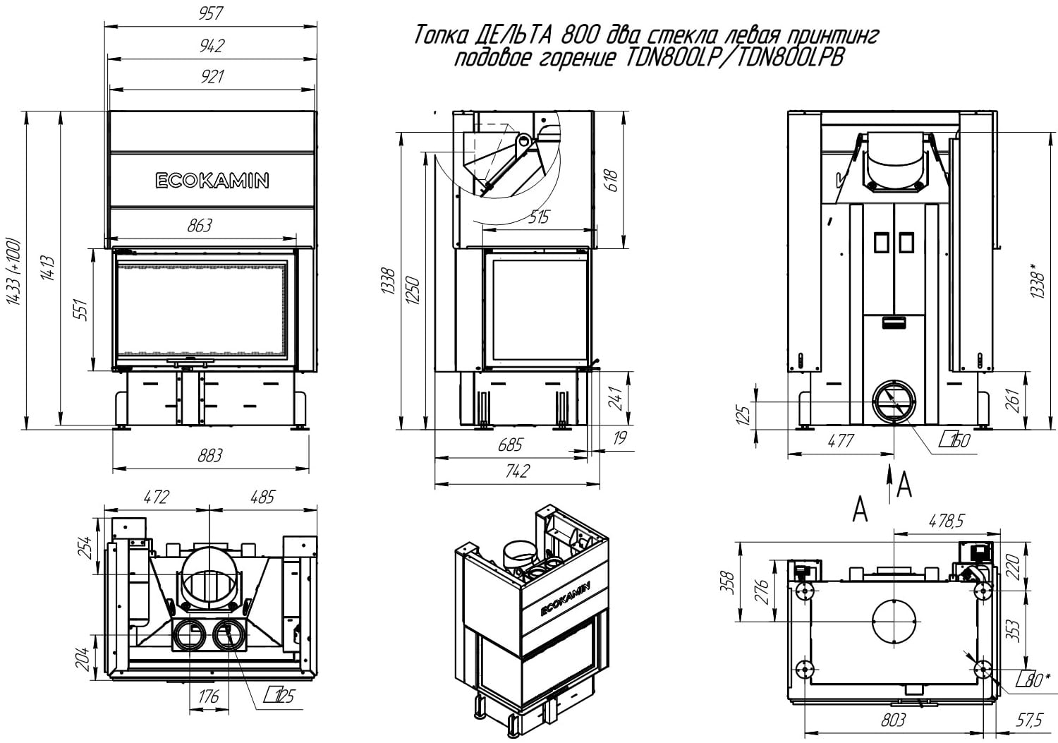 PDF Топки ЭкоКамин Вега, Дельта (2.68MB)PDF Габариты каминных топок ЭкоКамин Дельта 800 LP (218.71KB)