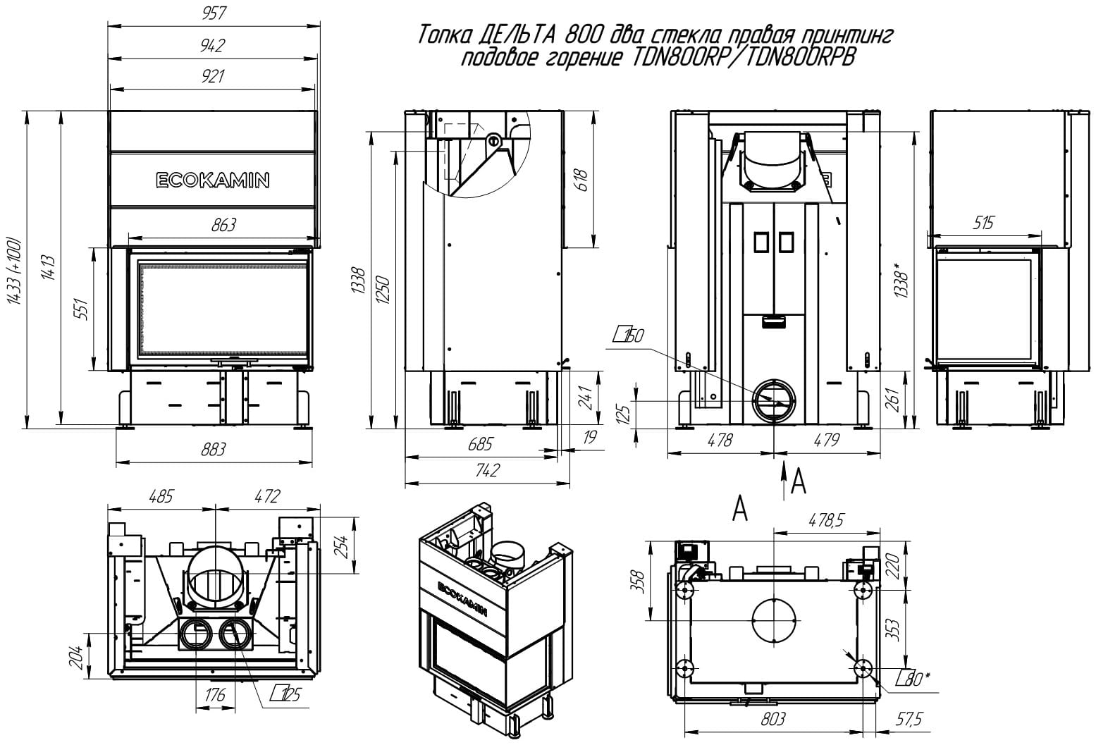 PDF Топки ЭкоКамин Вега, Дельта (2.68MB)PDF Габариты каминных топок ЭкоКамин Дельта 800 RP (224.16KB)