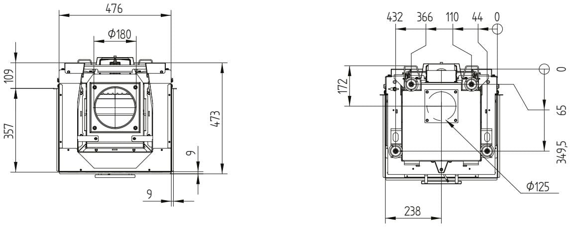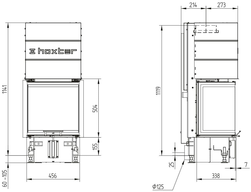 Также все модели Hoxter имеют возможность подвода воздуха на горение извне (из соседнего помещения или улицы). Для этого в конструкции предусмотрен патрубок диаметром 125 или 150 мм.
