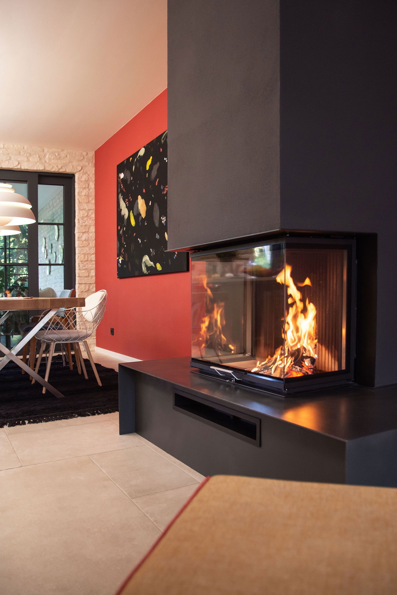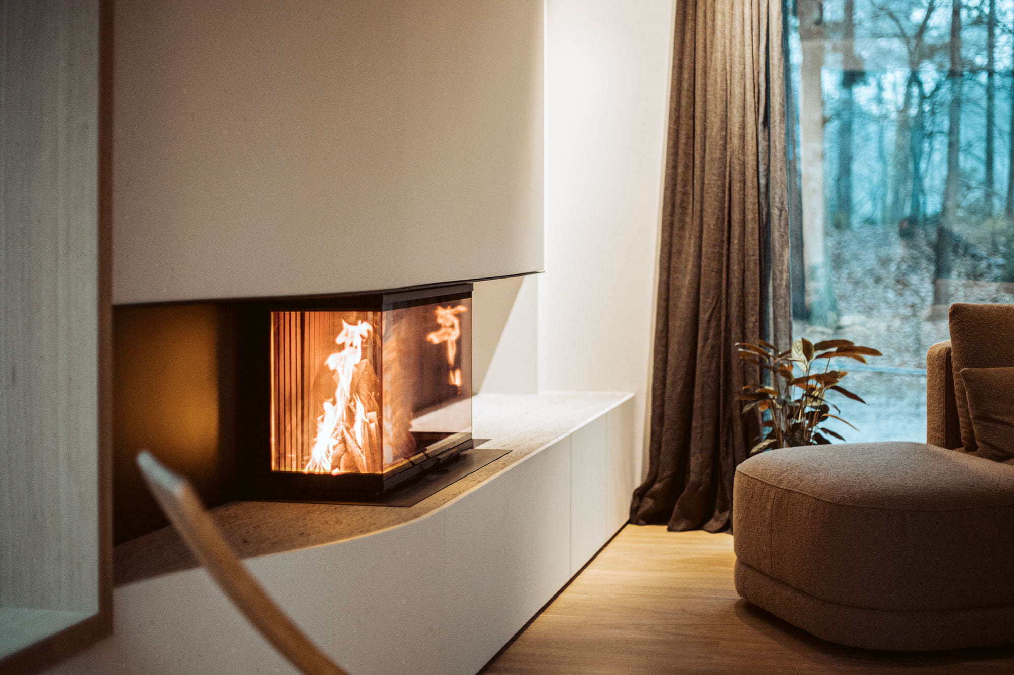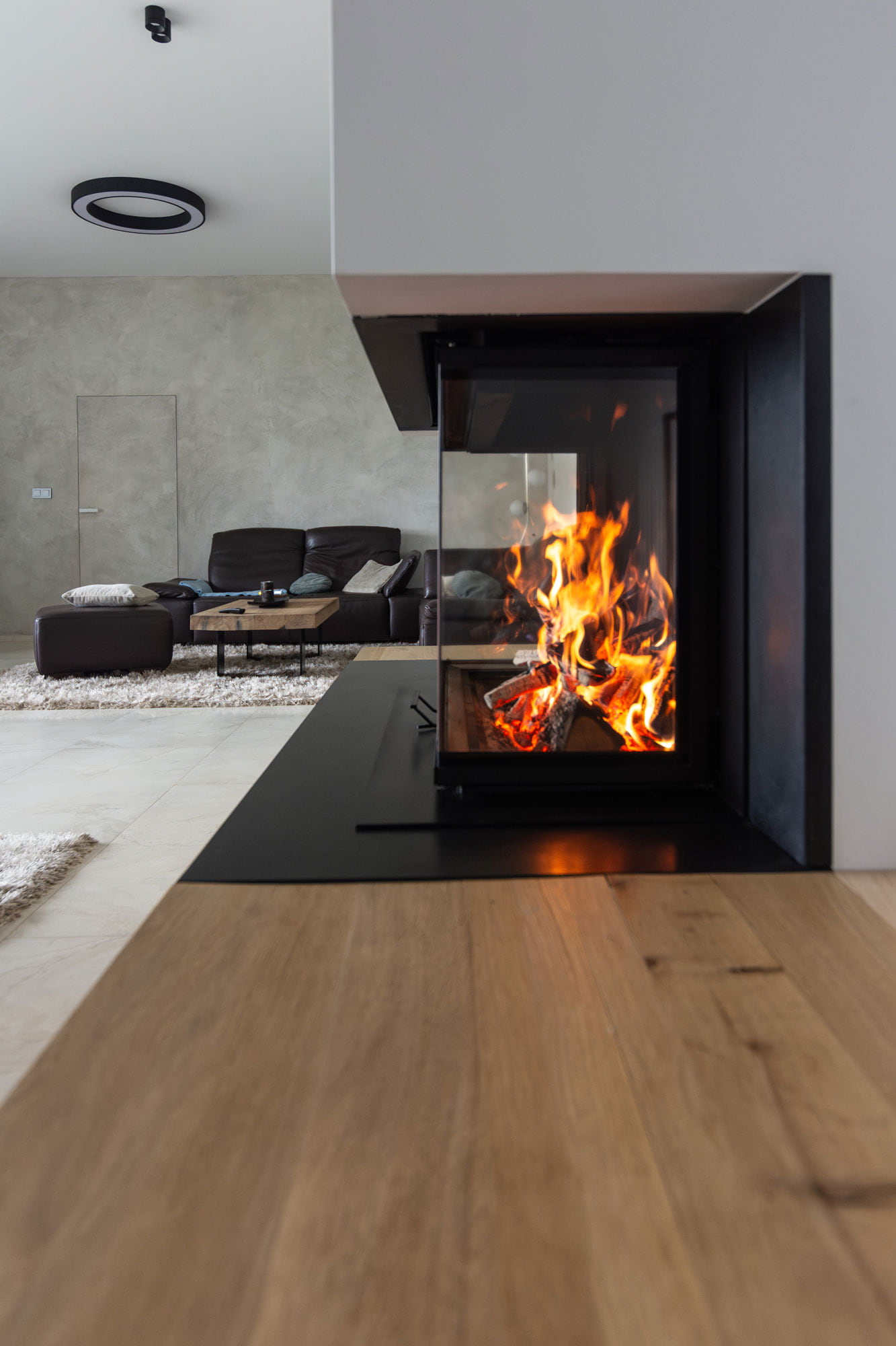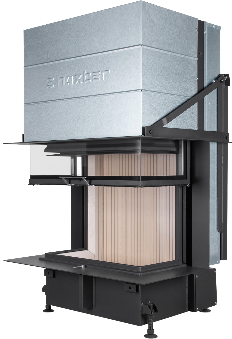 Кроме того, уменьшается передача тепла от стекла в помещение, что делает нахождение возле камина более комфортным. Компания Hoxter в 2012 году впервые на рынке представила двойное остекление топок с цельногнутым угловым стеклом.