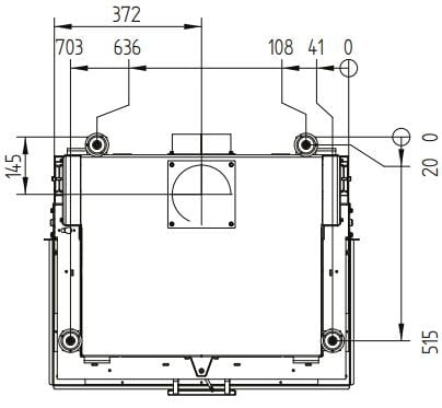 Топочная камера футерована шамотом светлого (опционально тёмного) оттенка. Модель работает по принципу подового (безколосникового) горения. Топка обладает всеми современными технологиями горения: вторичный дожиг газов и система "Чистое стекло". Очаг с возможностью притока воздуха извне. Топку можно оснастить аккумулятивным комплектом. Для отвода продуктов сгорания необходим дымоход диаметром 200 мм.