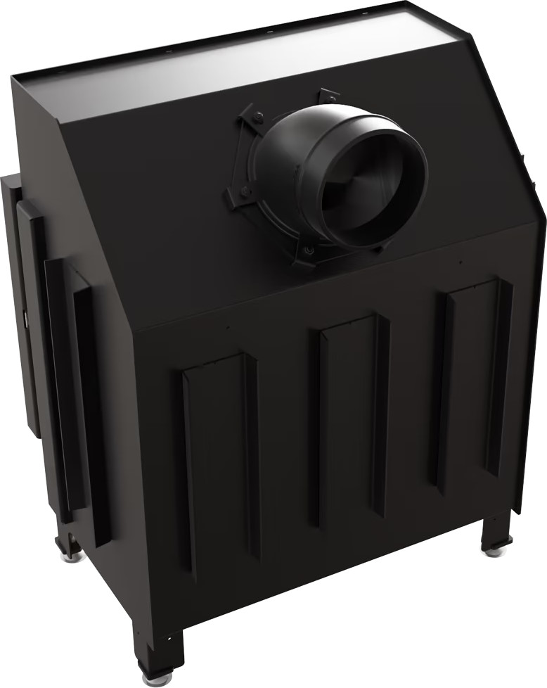 Топка с технологией подового (безколосникового) горения. Топочная камера футерована керамикой. Модель обладает всеми современными технологиями горения: вторичный дожиг газов и система "Чистое стекло". Очаг с возможностью притока воздуха извне. Для отвода продуктов сгорания необходим дымоход диаметром 180 мм.