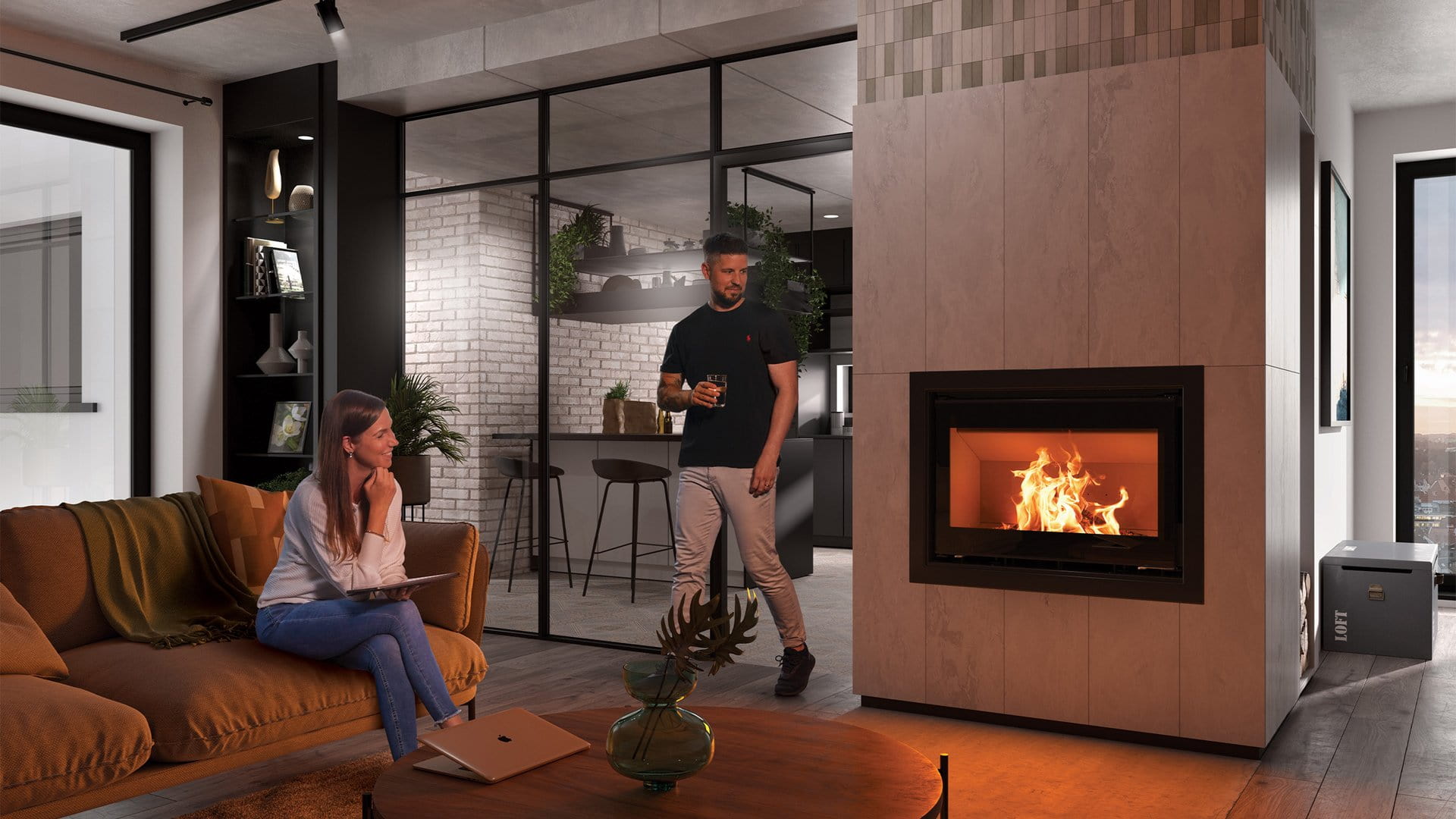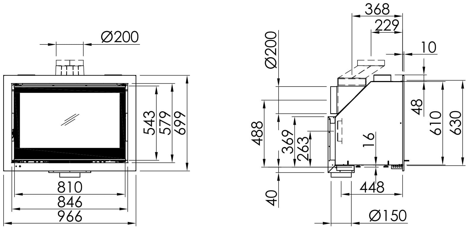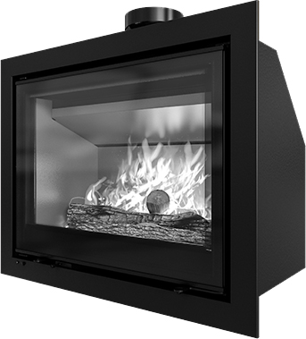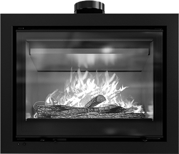 Топочная камера футерована шамотом белого цвета. Модель с режимом подового (безколосникового) горения. Топка обладает всеми современными технологиями горения: вторичный дожиг газов и система "Чистое стекло". Очаг с возможностью притока воздуха извне. Для подключения необходим дымоход диаметром 200 мм.
