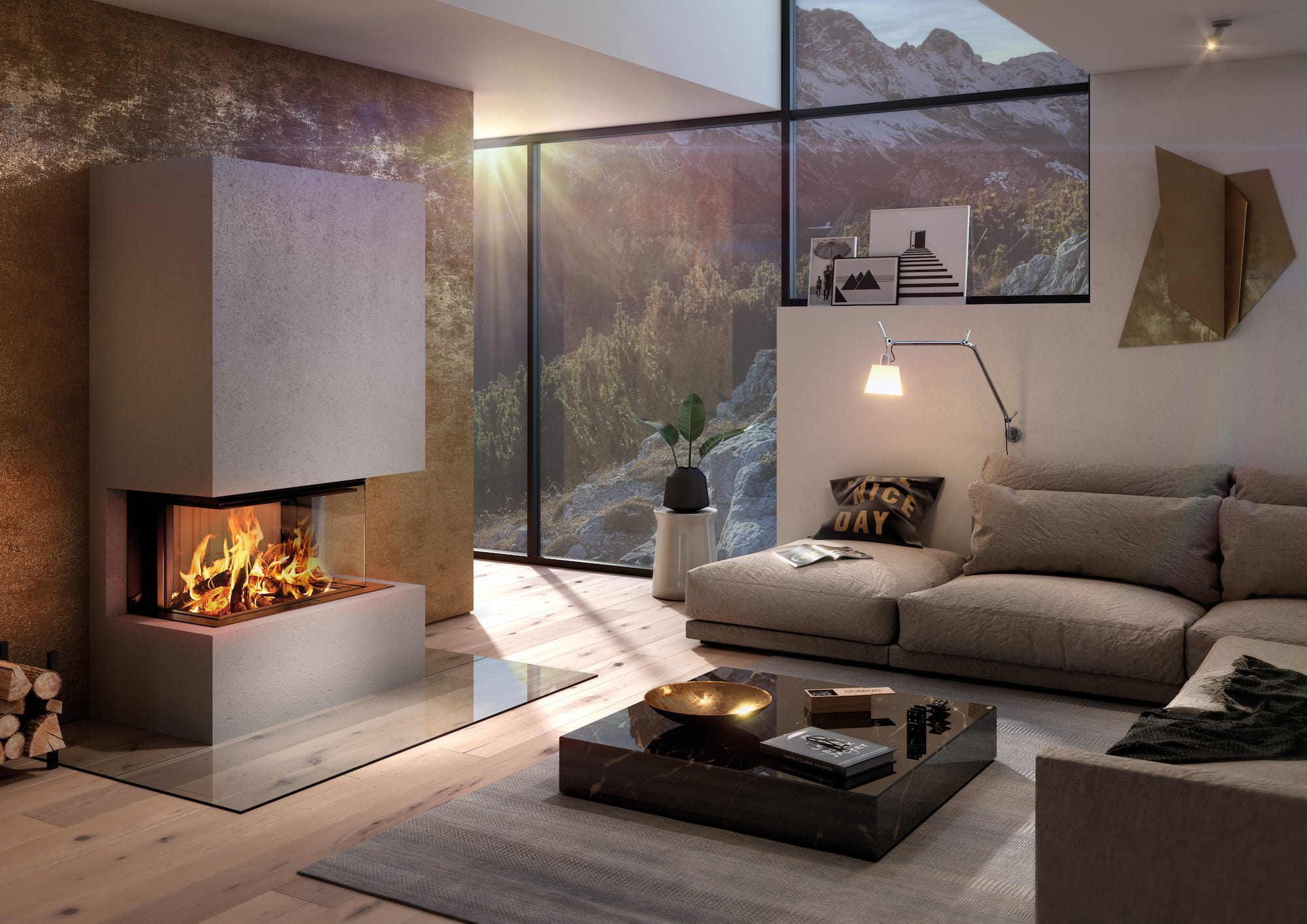 - Varia — максимальное разнообразие форм и размеров: фронтальные модели с подъёмным механизмом или левым/правым открыванием двери; двухсторонние (пристенно-угловые) варианты с обоими способами открывания; трёхсторонние топки с подъёмным механизмом или же модели со сквозным обзором, для встраивания между двумя комнатами. Ширина стекла — до 1200 мм. Макс. мощность в диапазоне 9.1—19.5 кВт.
