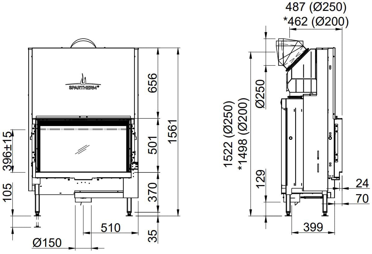 Каминная топка Spartherm Premium V-1V-87h (Шпартерм Premium V-1V-87h) — это высокоэффективная, современная модель с корпусом из стали. Максимальная мощность равна 12.4 кВт, чего хватает для обогрева помещения в 310 м³. КПД — 82%. У топки прямое жаропрочное стекло, в безрамочном исполнении (отделка Premium). Дверца с подъёмным механизмом, комплектуется 4-сторонней массивной монтажной рамой. Ширина дверцы — 888 мм, высота — 501 мм.