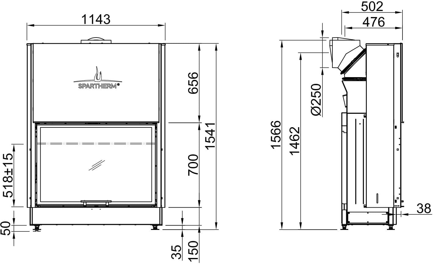 Для завершенности конструкции и прочности камина возможна установка монтажной рамы. Spartherm предоставляет несколько вариантов: