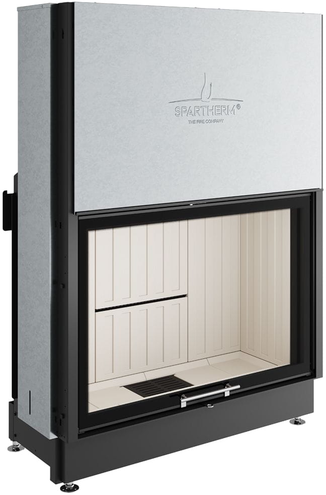 Каминная топка Spartherm Varia 1V100h 2.0 (Шпартерм Varia 1V100h 2.0) — это высокоэффективная, современная модель с корпусом из стали. Максимальная мощность равна 13.5 кВт, чего хватает для обогрева помещения в 335 м³. КПД — 80%. У топки прямое жаропрочное стекло, украшенное по периметру шелкографией (отделка Linear 4S). Дверца с подъёмным механизмом. Ширина дверцы — 1006 мм, высота — 700 мм.